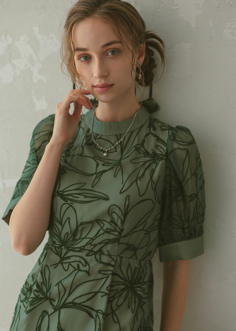 抽象的な線で描かれた花柄なので、可愛らしくなり過ぎず都会的な印象に。