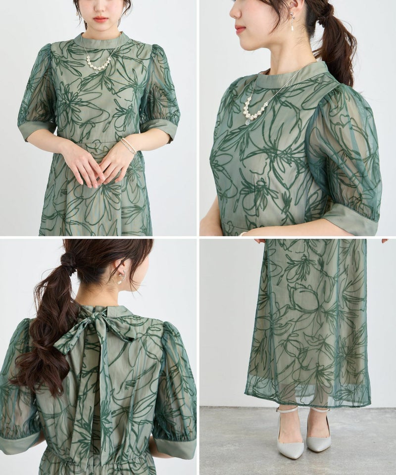 生地には、人気のボウタイボレロセットドレス(商品番号:82658)と共通のフロッキー生地を使用。