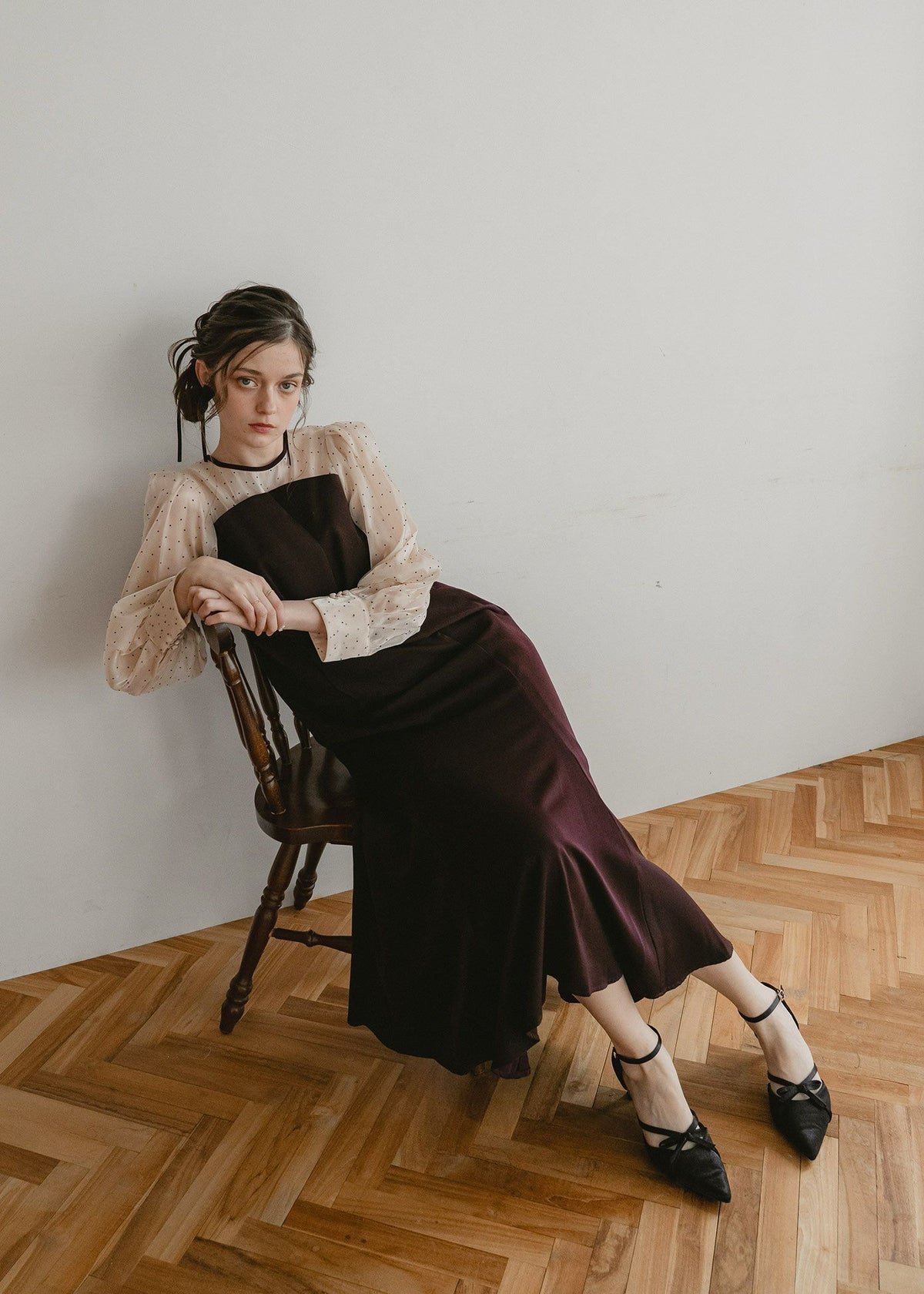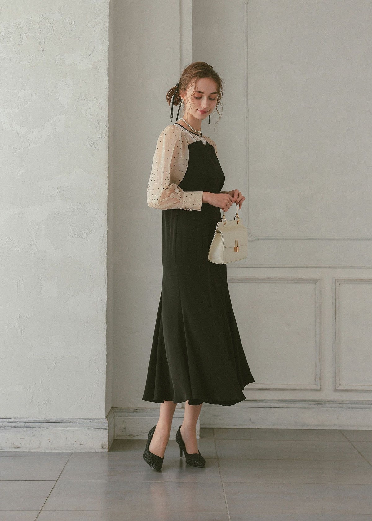 ドットスリーブマーメイドドレス