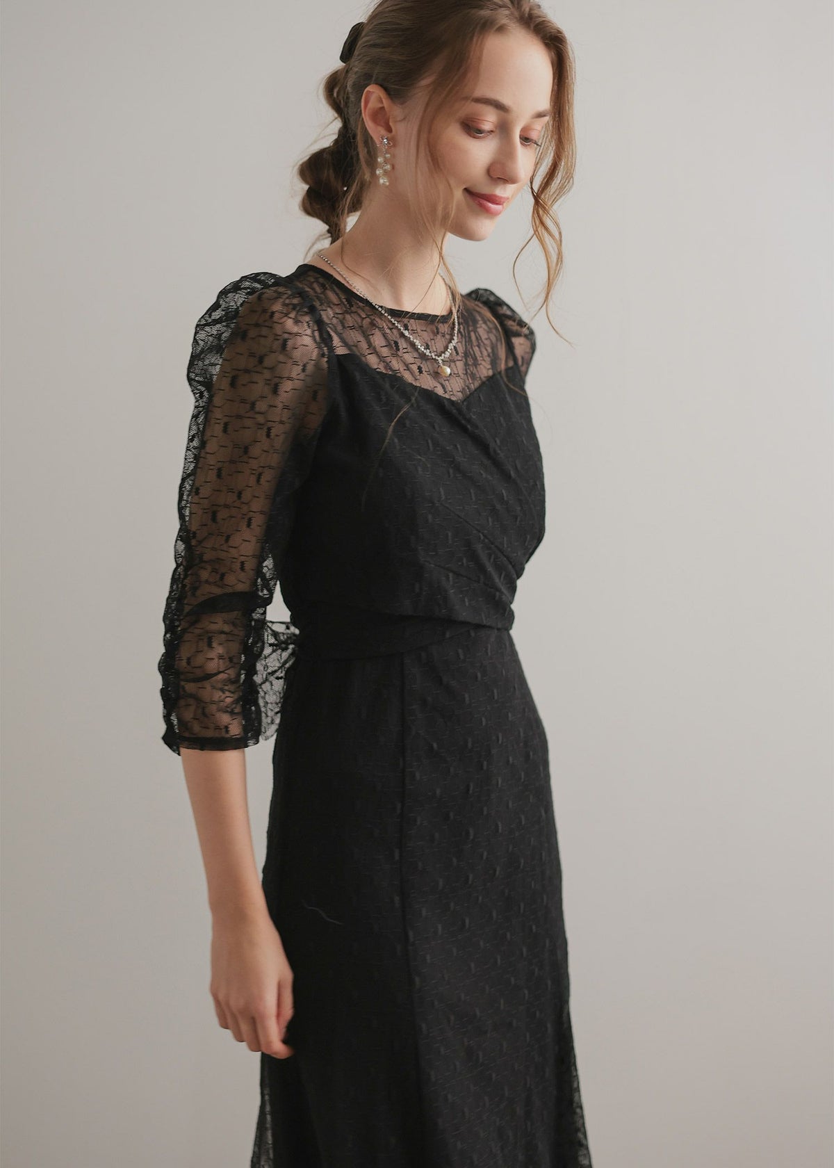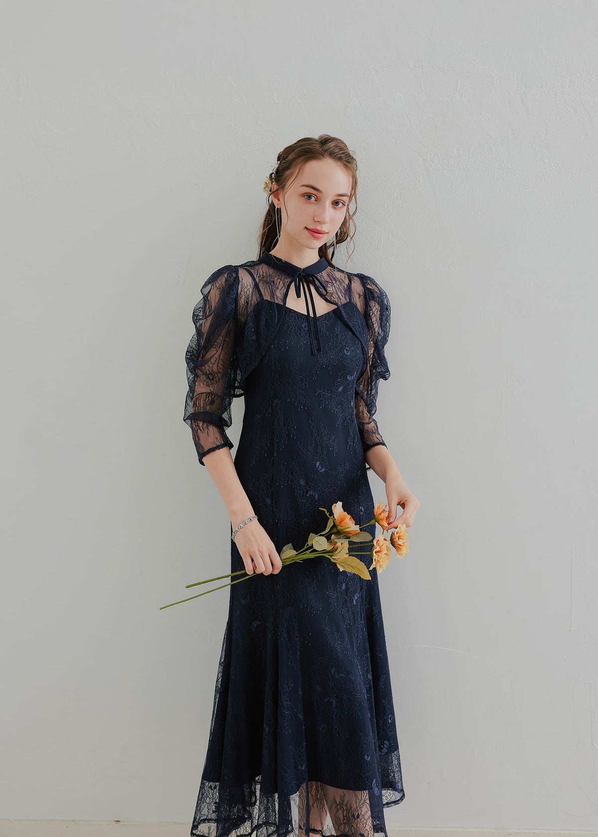ボレロレイヤードレースドレス