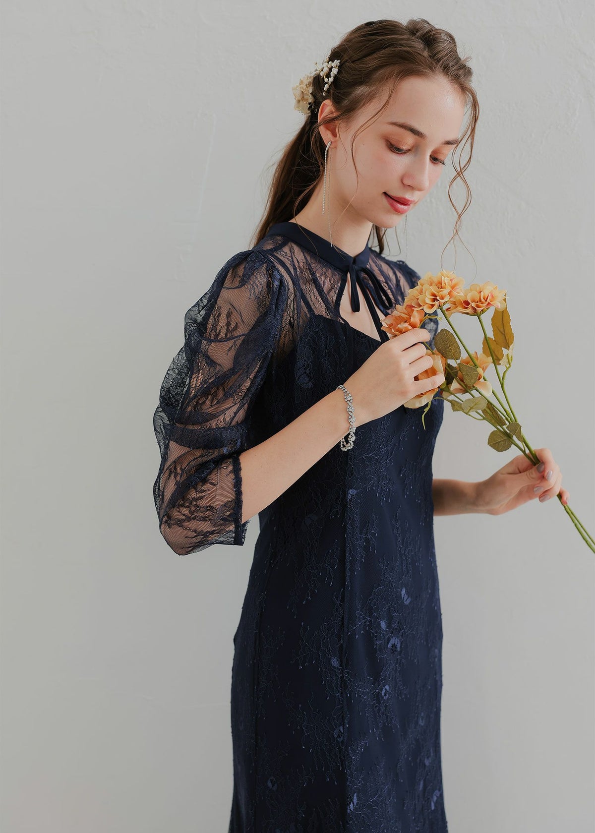 ニュアンスフラワーレースドレス