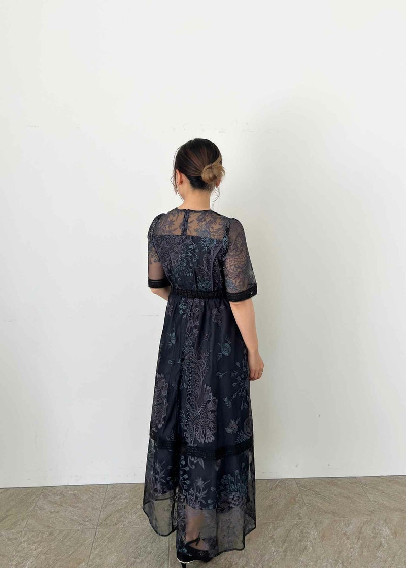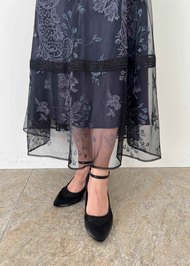 デコルテ、スカート裾部分はさりげなく透けるので