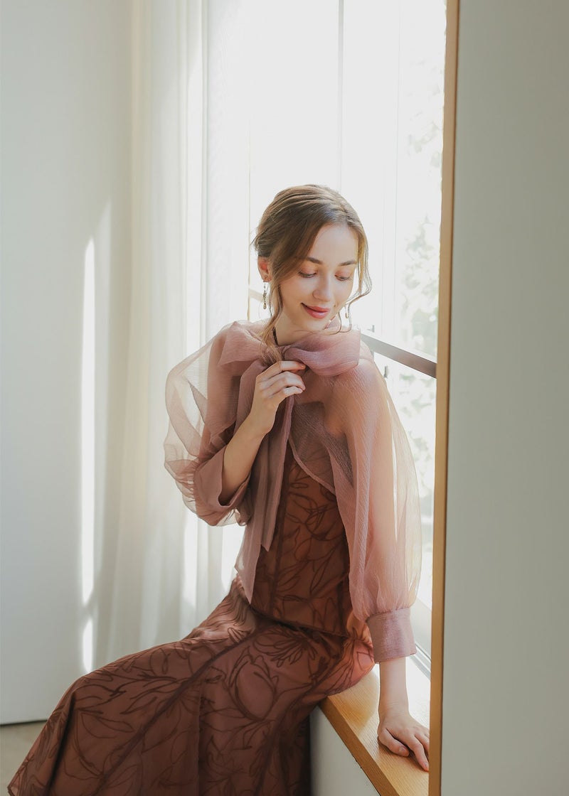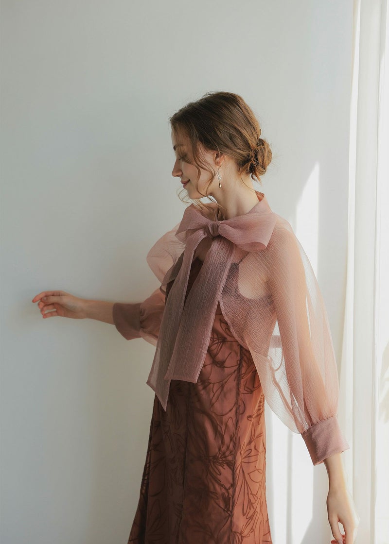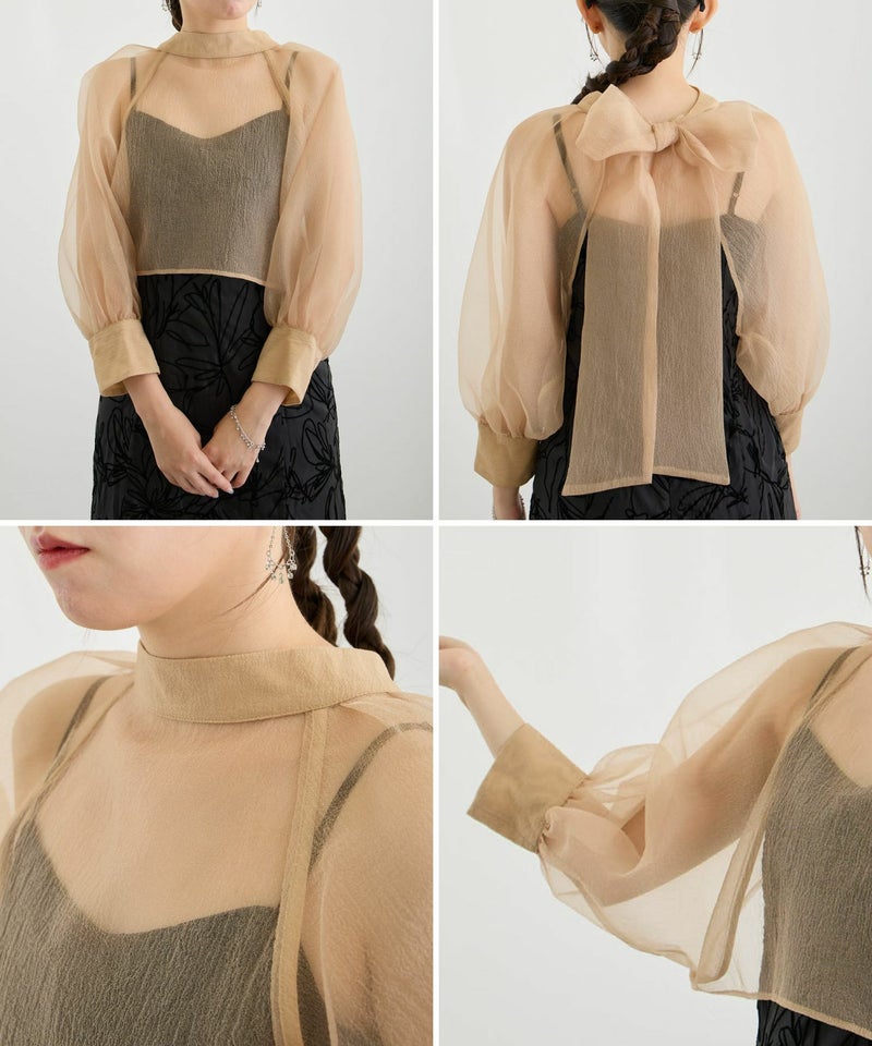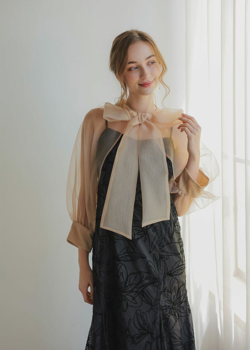 ボレロには凹凸としたニュアンス感のあるオーガンジーを使用。