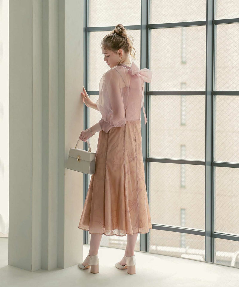 ボリュームのあるボウタイや、キャンディスリーブが、可愛らしさとどこかモードな雰囲気を漂わせる絶妙なデザインです。