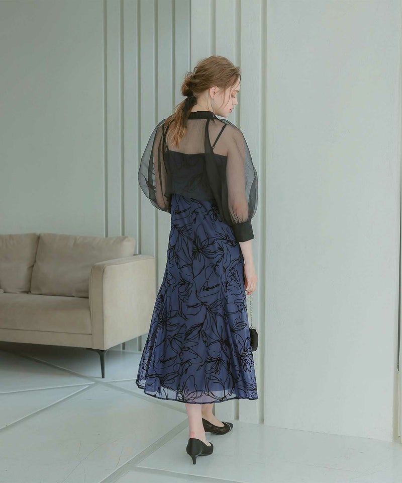 ワンピースの素材には、柄の部分が少し起毛したフロッキー生地を使用しているので、これからの季節にもピッタリです?