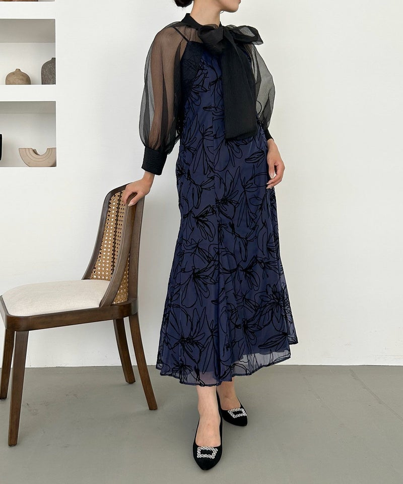 ボウタイが印象的なボレロ&キャミワンピースのセットドレス