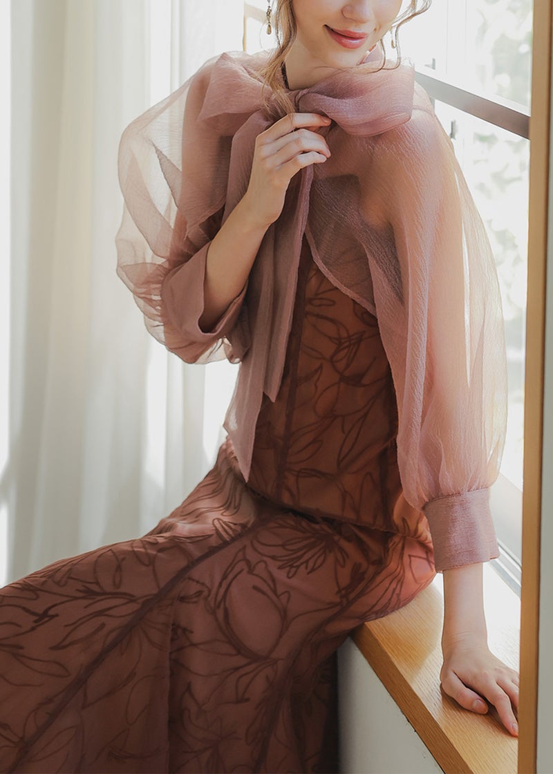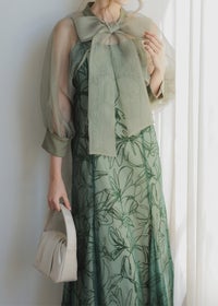 ボウタイが印象的なボレロ&キャミワンピースのセットドレス