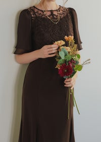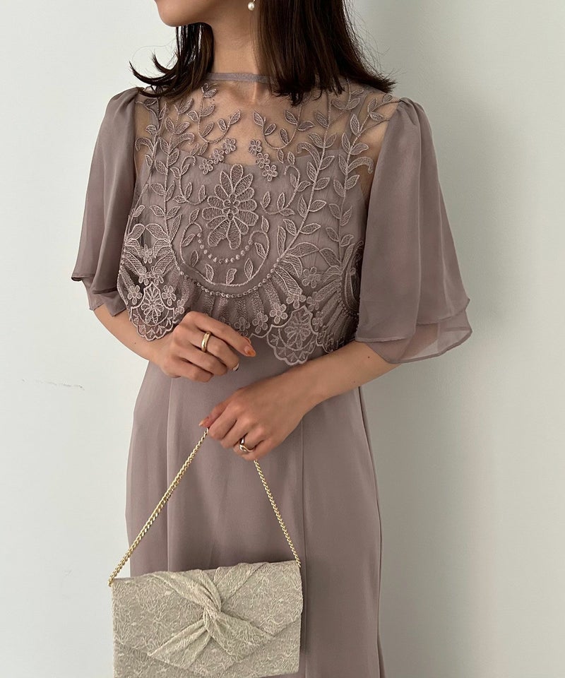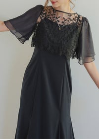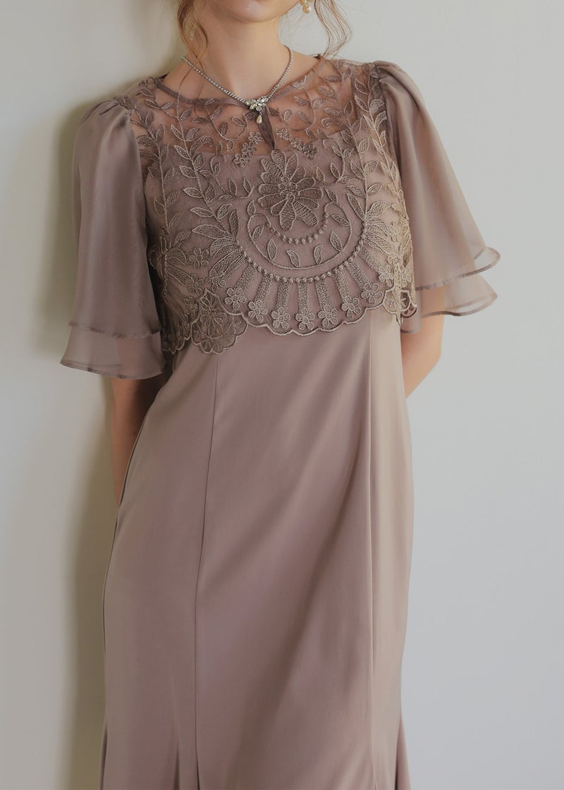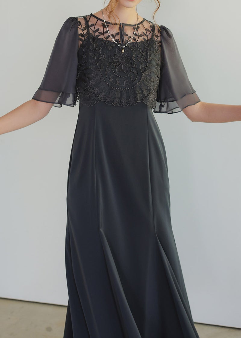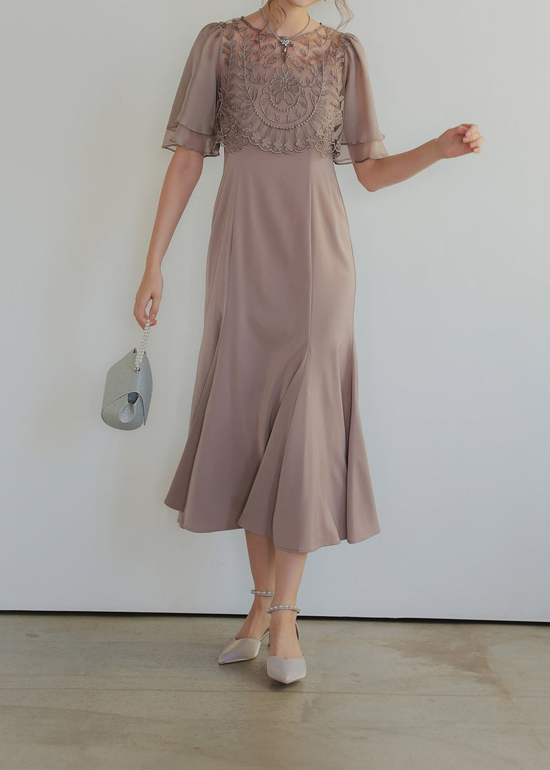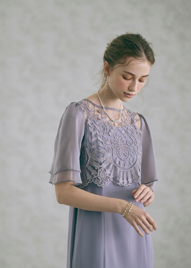 大胆な刺繍レースを使用したブラウスとキャミワンピースが セットになったエレガントな印象のドレス。 ブラウスは短めの丈でメリハリをつけスタイルアップ効果が◎ 袖はオーガンジーを2枚合わせの五分袖の肘上丈で、 裾に向かうにつれ広がりを持たせているので二の腕カバーも安心。 華やかなシーンではボレロの羽織りがなくても一枚で着用いただけるのも魅力です。 キャミドレスは好評頂いている美シルエットマーメイドの ボディラインを拾いすぎないソフトマーメイドシルエットです。 歩く度に揺れ、上品な華やかさを演出します。 キャミワンピースは1枚ではもちろん、ジャケット合わせもおすすめです。 インナーを合わせれば普段使いにもおすすめな1着です。 ※こちらの商品はWeb限定商品でございます。 ※商品画像は、光の当たり具合やパソコンなどの閲覧環境により、 実際の色味と異なって見える場合がございます。予めご了承ください。 モデル着用サイズ 172cm/Mサイズ