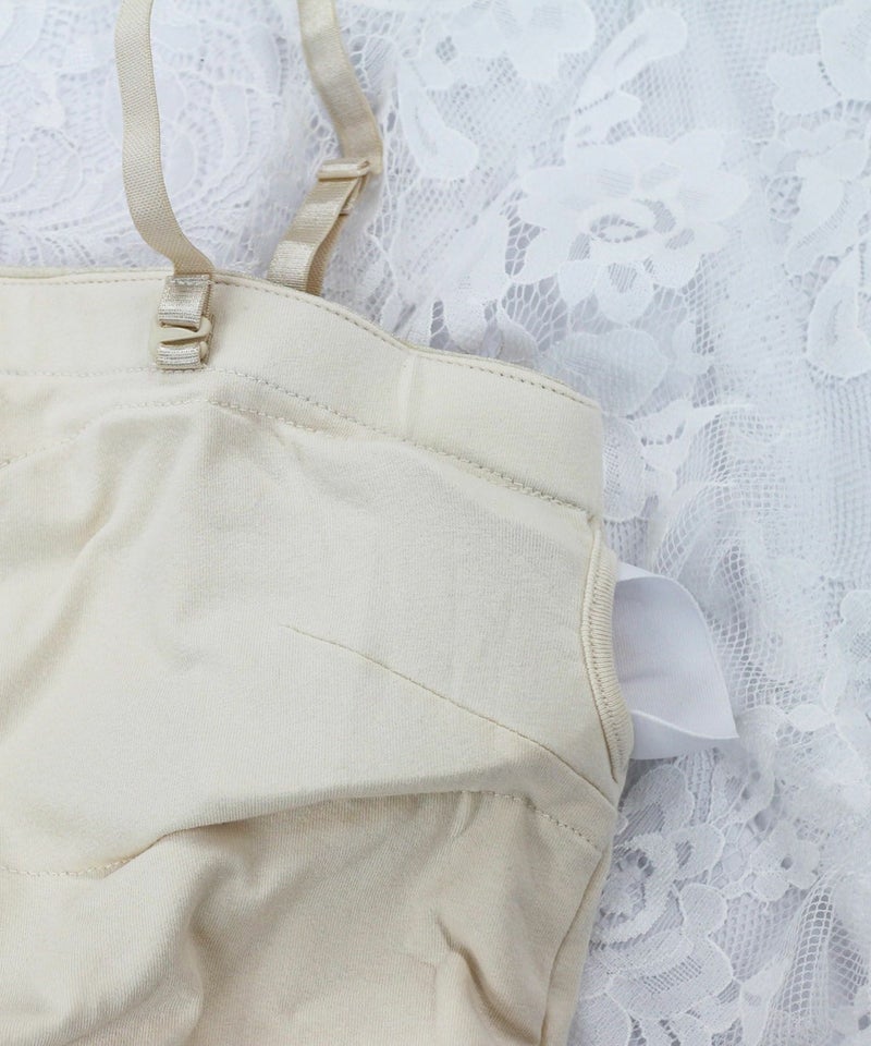 こちらのキャミソールならラメ部分が見えてもゴージャス感が増し、同時にドレスへの汗ジミも防いでくれるので、機能性、デザイン性ともに優秀です。