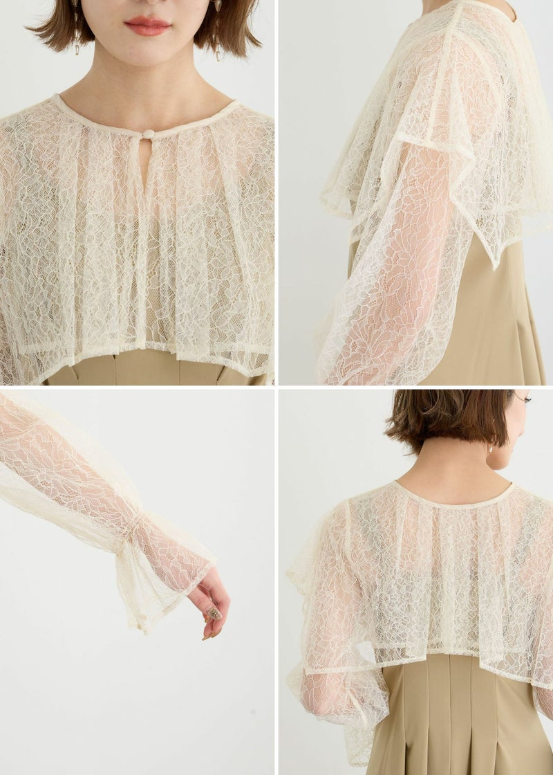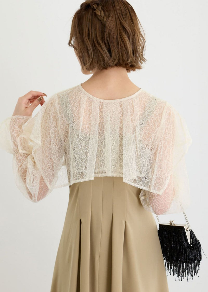 レースデザインが特徴なケープボレロ。 キャンディスリーブで気になる二の腕をカバーしてくれるのも嬉しいポイント◎ 羽織るだけで上品かつ華やかさを放ちます ドレスのデザインと合わせやすいようシンプルカラーでまとめショート丈に♪ お手持ちのシンプルなキャミワンピース合わせもおすすめです。 しわになりにくく、かさばらないのでバッグに携帯して防寒や夏の冷房・紫外線対策にも◎ こちらの商品はWeb限定商品です。 ※ハンガー掛けの商品画像が実際の商品のお色味に近くなっております。 ※商品画像は、光の当たり具合やパソコンなどの閲覧環境により、 実際の色味と異なって見える場合がございます。予めご了承ください。