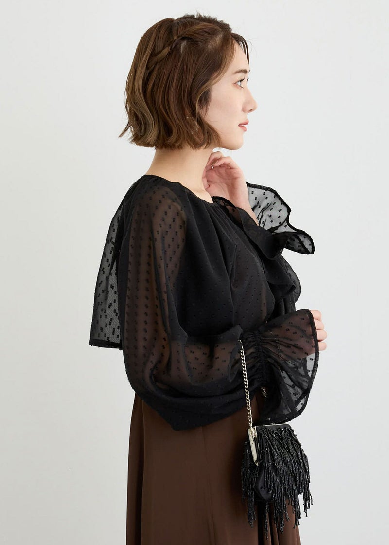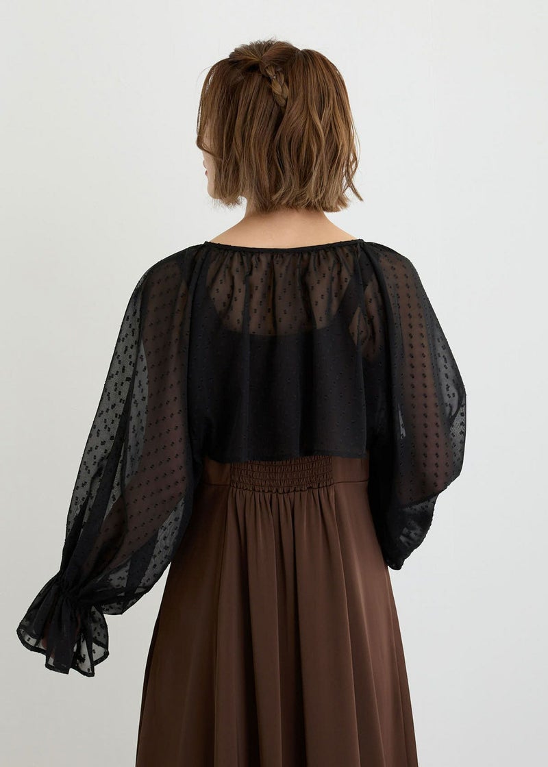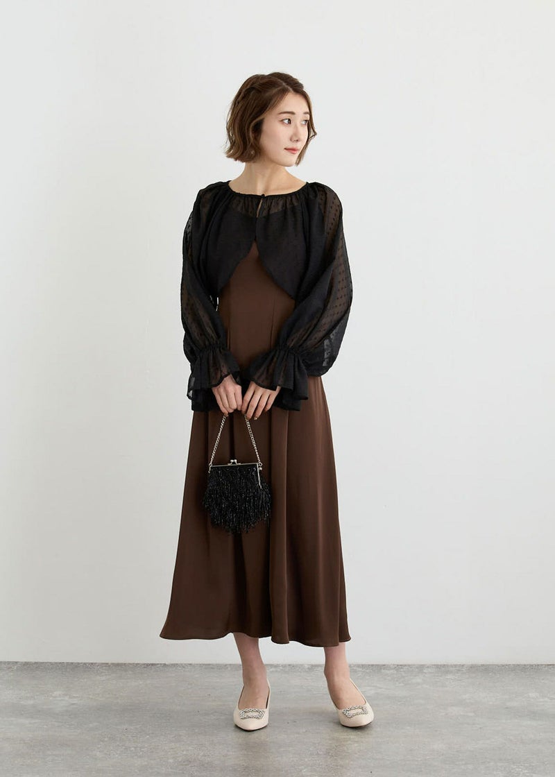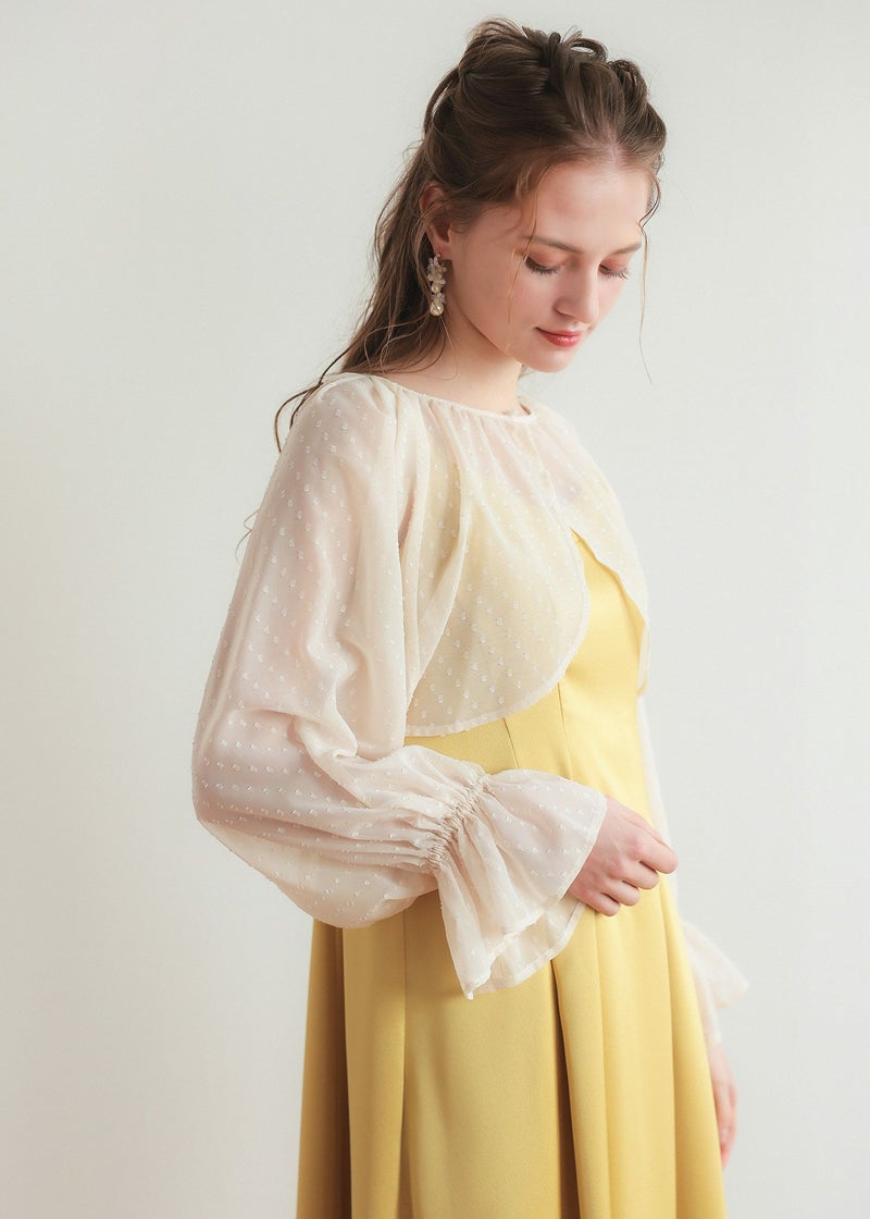パールボタンを飾り付けたたドット柄のシアーボレロ。 さりげないドット柄がアクセントになり、オシャレ度がぐっと上がります。 たっぷり分量のキャンディスリーブで気になる二の腕をカバーしてくれます。 羽織るだけで上品かつ華やかさを醸し出します。 ショート丈なので、どんなドレススタイルにも合わせやすいのもポイント。 お手持ちのキャミワンピース合わせもおすすめです。 しわになりにくく、かさばらないのでバッグに携帯して防寒や夏の冷房・紫外線対策にも◎ ※ハンガー掛けの商品画像が実際の商品のお色味に近くなっております。 ※商品画像は、光の当たり具合やパソコンなどの閲覧環境により、 実際の色味と異なって見える場合がございます。予めご了承ください。 こちらの商品はWeb限定商品です。