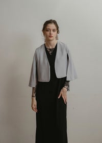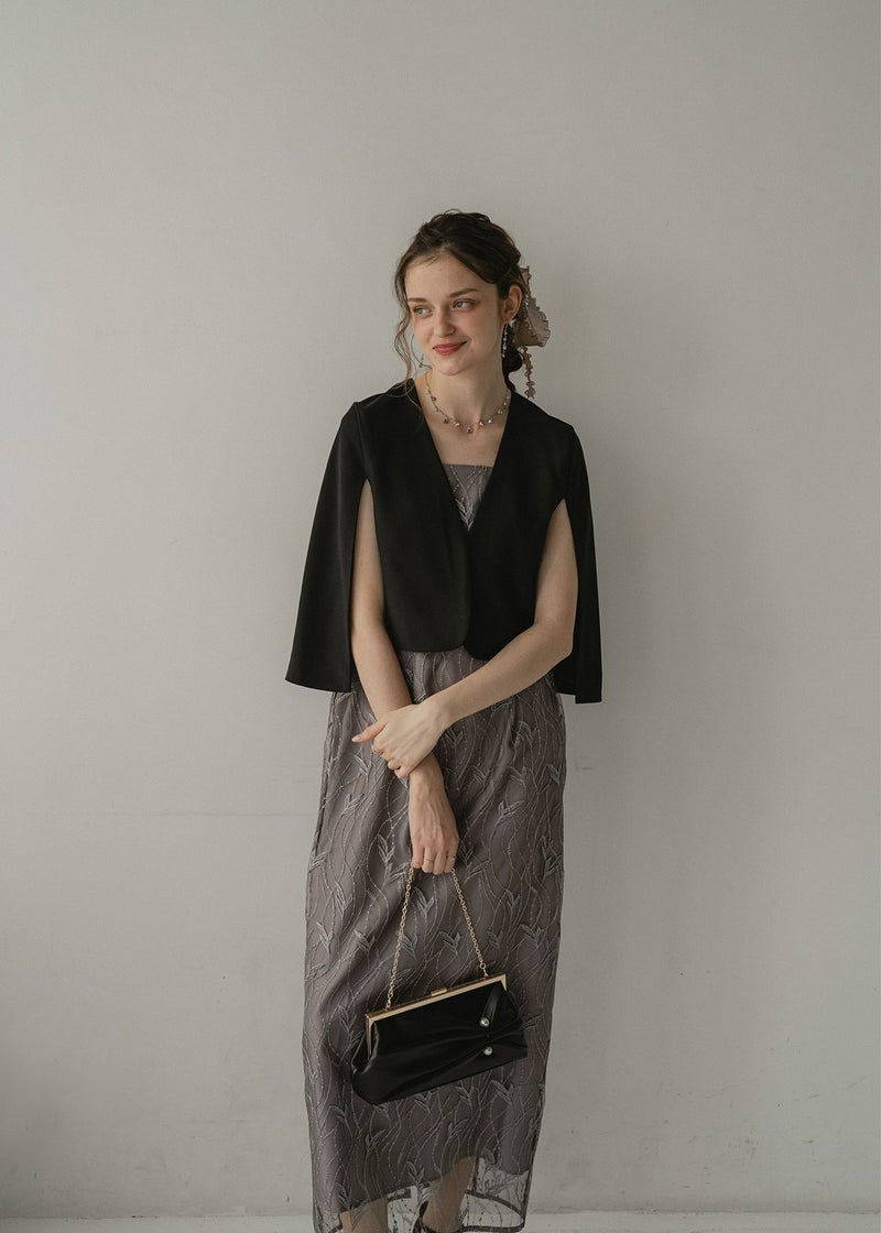 オケージョンコーデを上品に魅せてくれるジャケット。 ケープのようなシルエットや、動く度に揺れる袖は女性らしく柔らかい印象に。 袖はスリットのように程よく肌みせしつつ、しっかりと二の腕カバーもしてくれ、肩や腕周りの華奢見え効果も期待できます◎ 袖付きのドレスと合わせて、レイヤード感を楽しむのもおすすめ。 普通のジャケットよりかしこまり過ぎず、程よく抜け感のある着こなしを実現してくれるアイテムです。 ※商品のカラーは屋外では室内より明るく見えます。 ※液晶によって色味が違って見えるため、実際の商品と多少異なる事がございます。 予めご了承くださいませ。