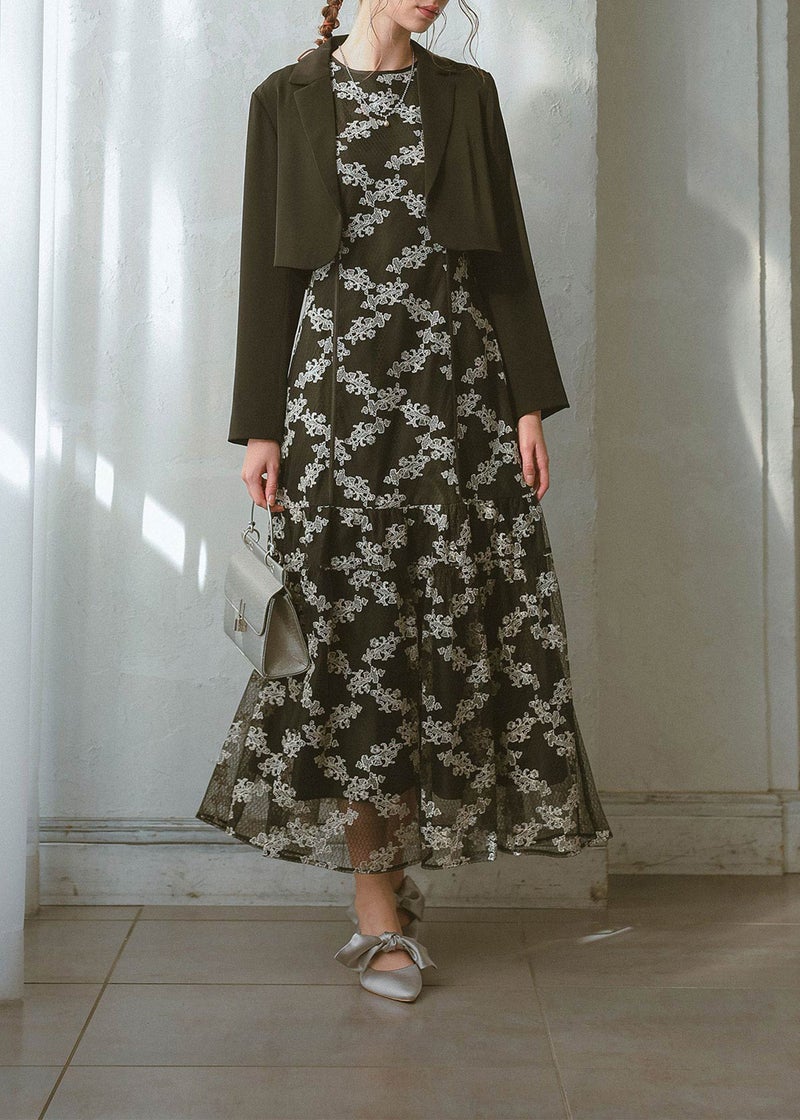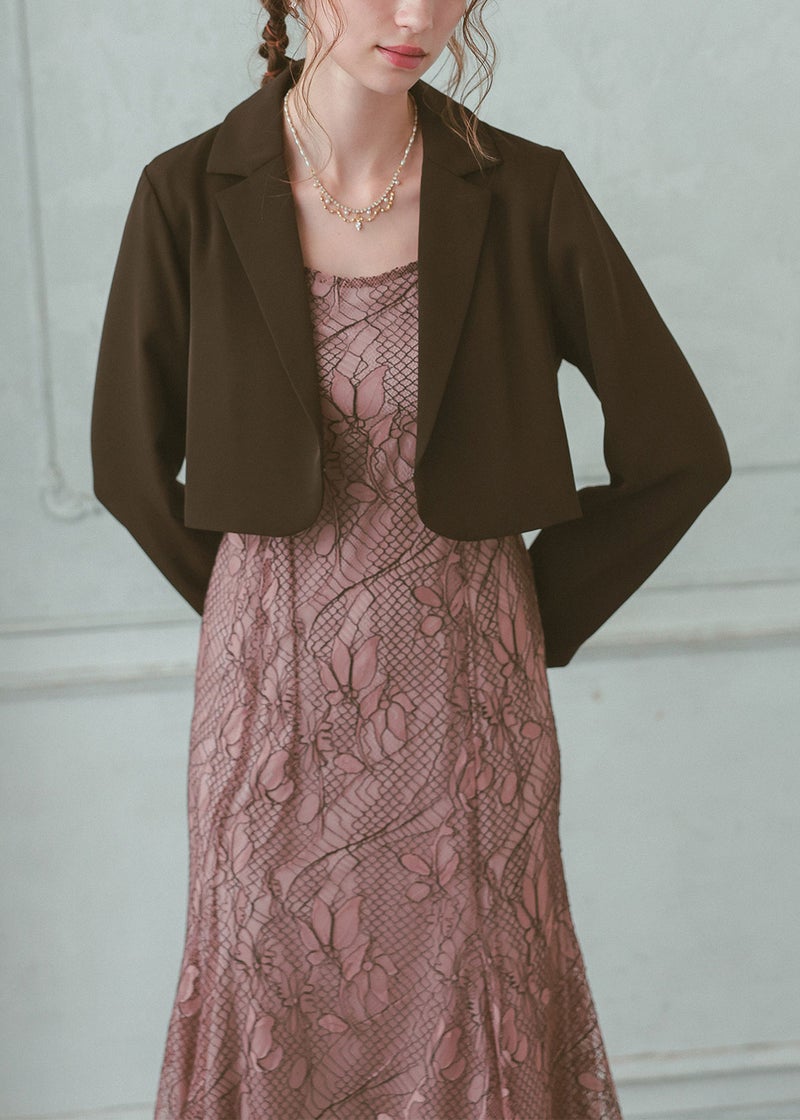 テーラードカラーで襟元はシャープな印象に。