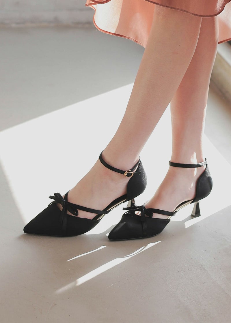 華奢なクロスリボンモチーフが可愛らしいパンプス。