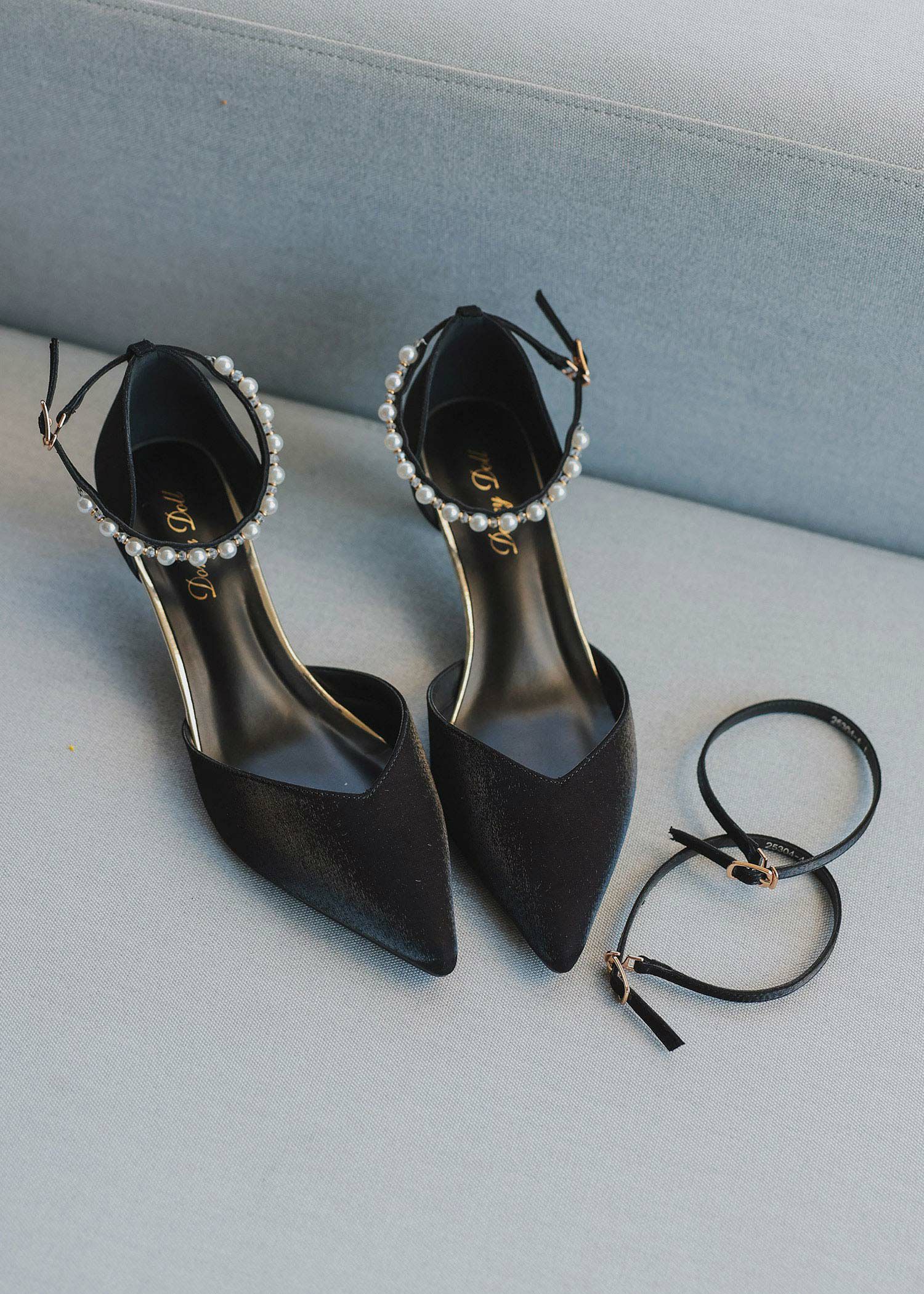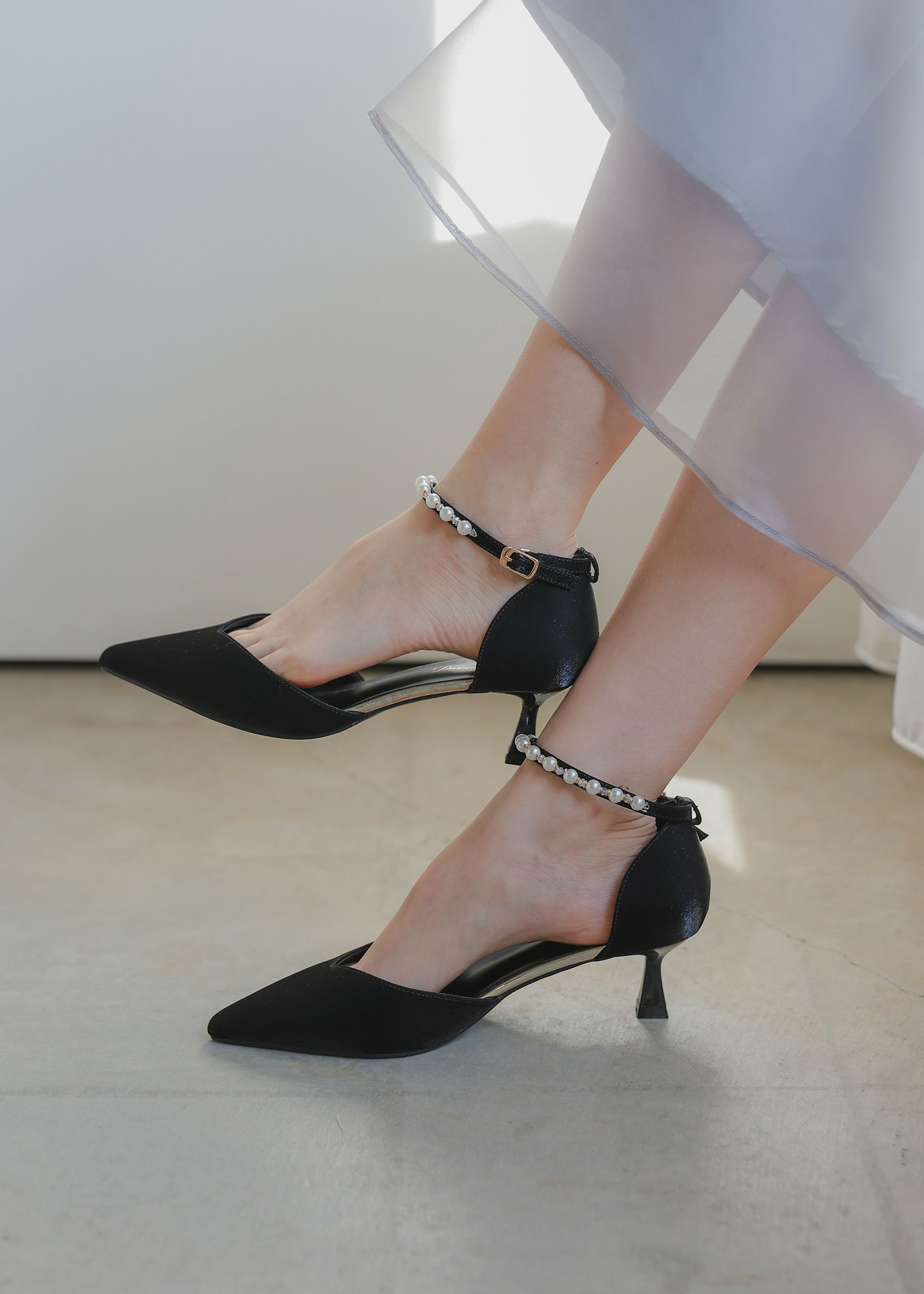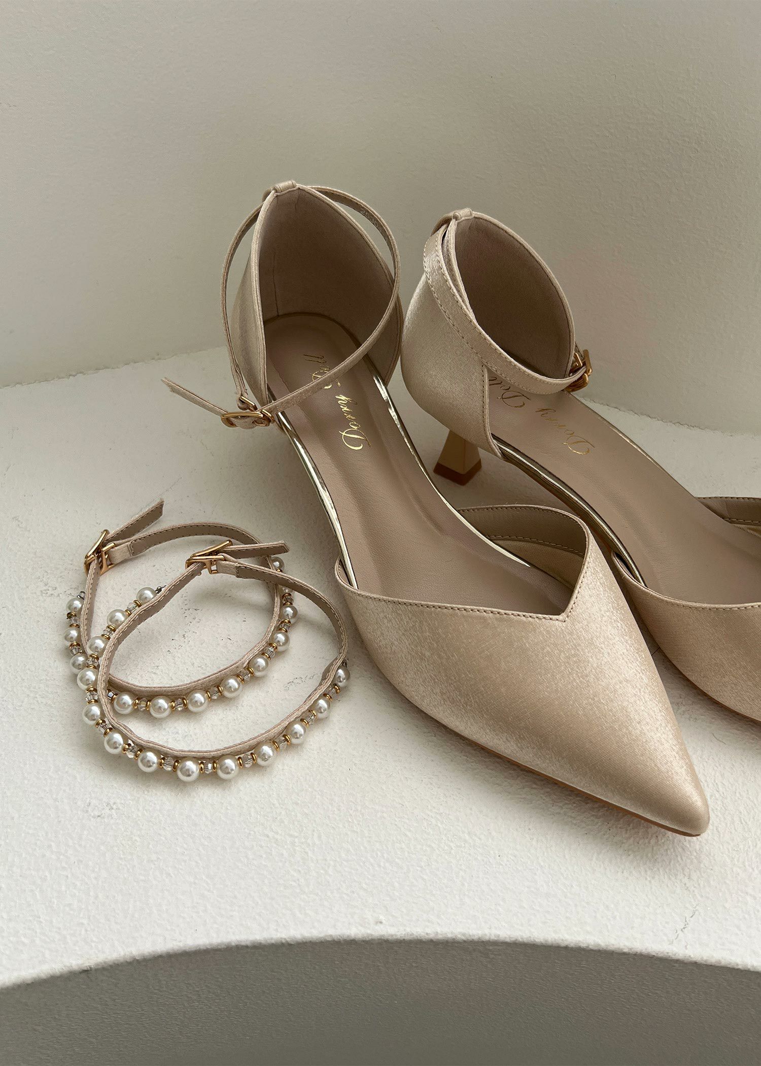 レースポインテッドトゥーパーティーパンプスストラップ付き