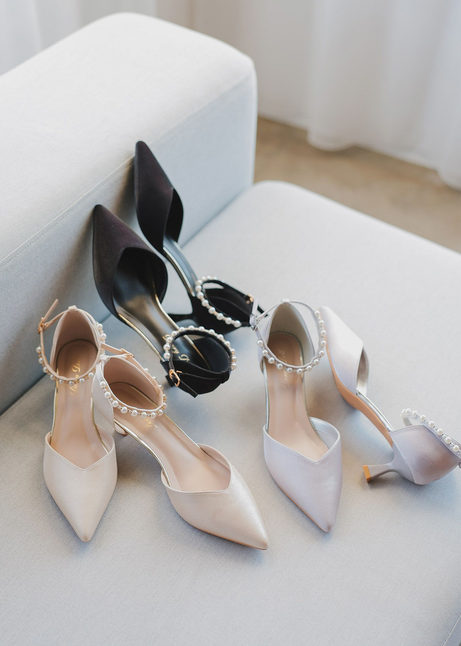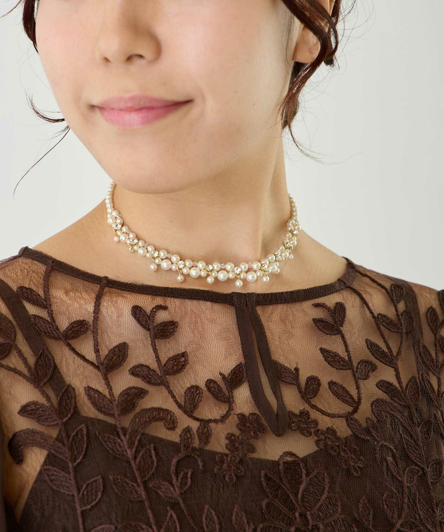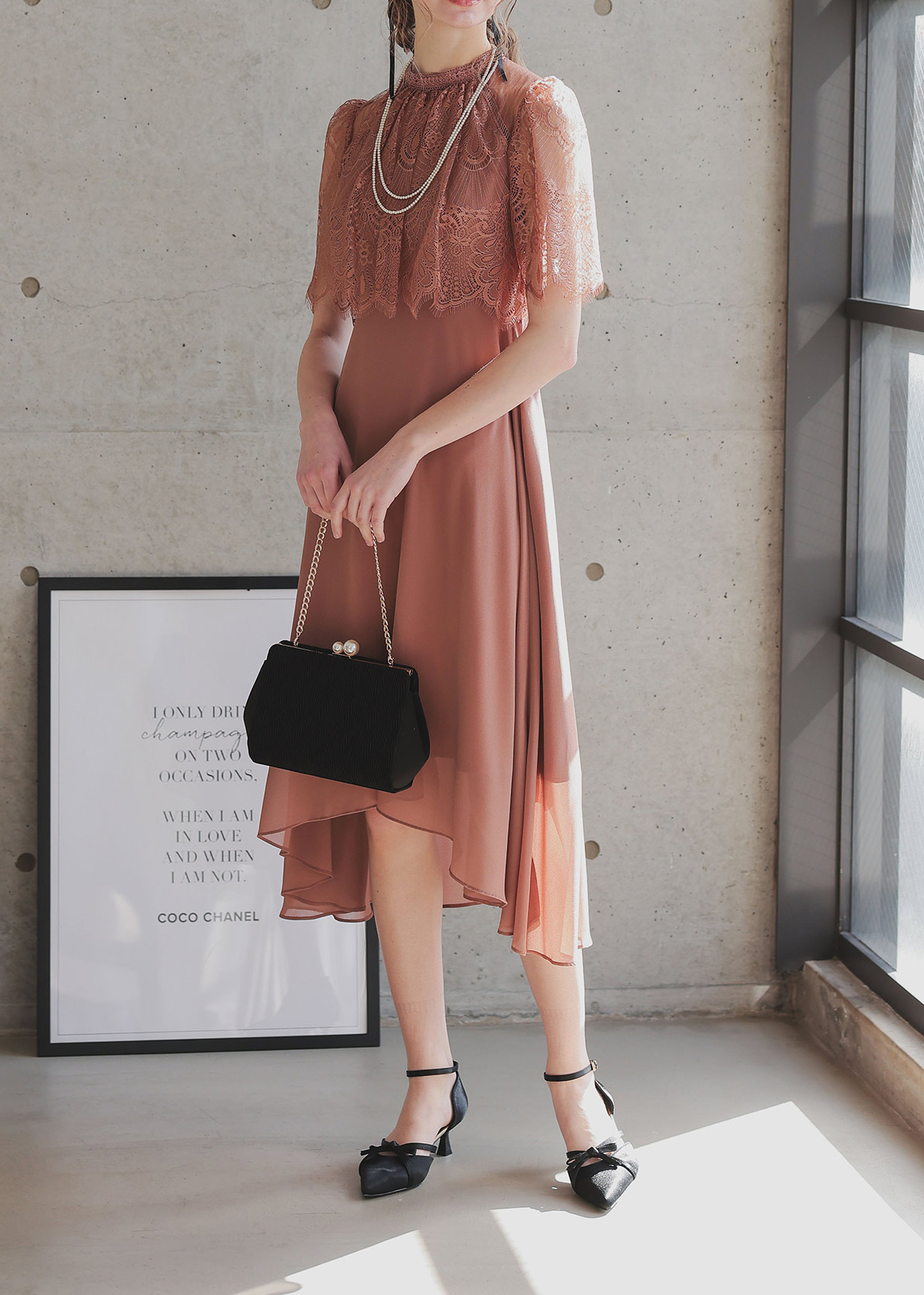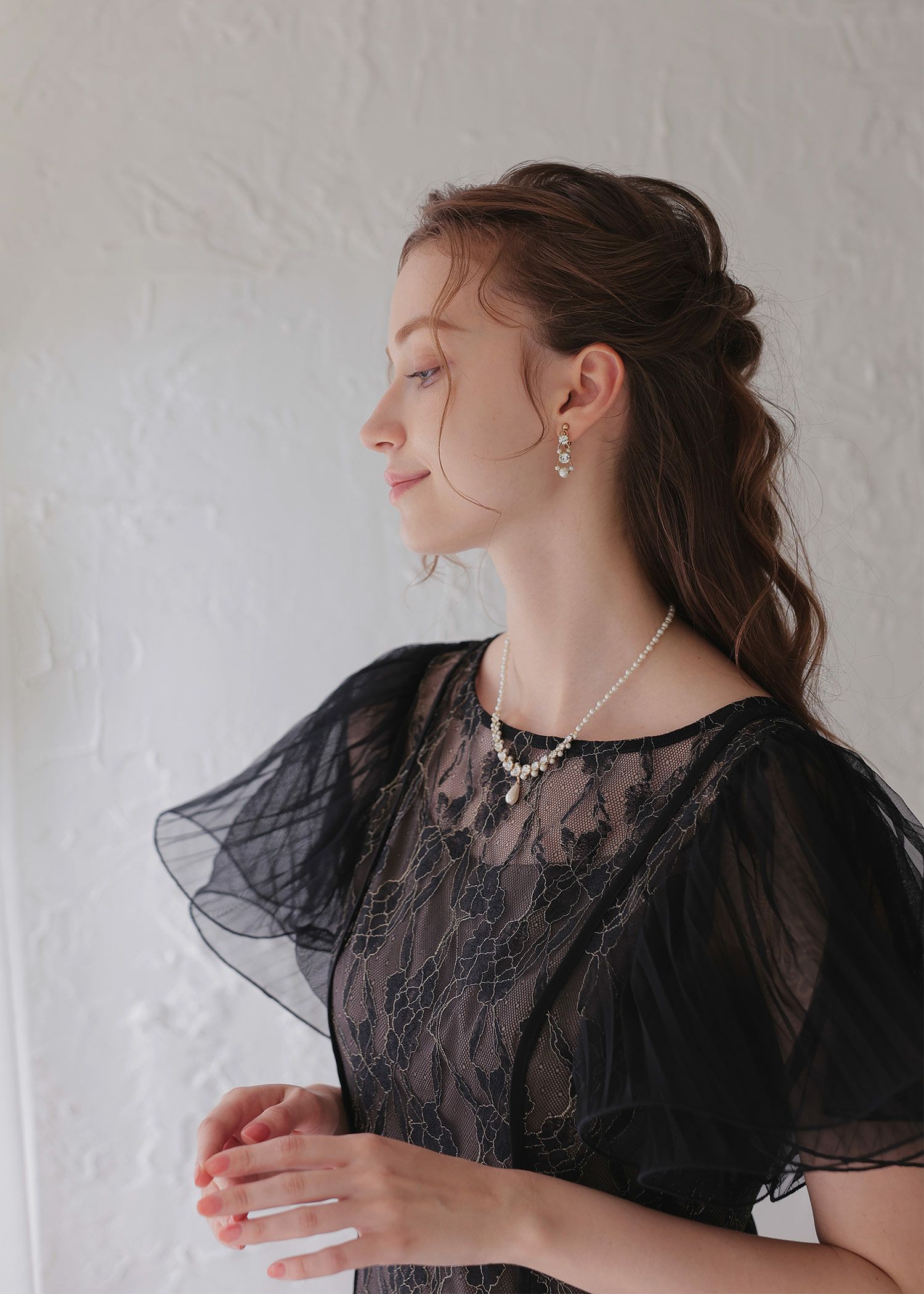 レースポインテッドトゥーパーティーパンプスストラップ付き
