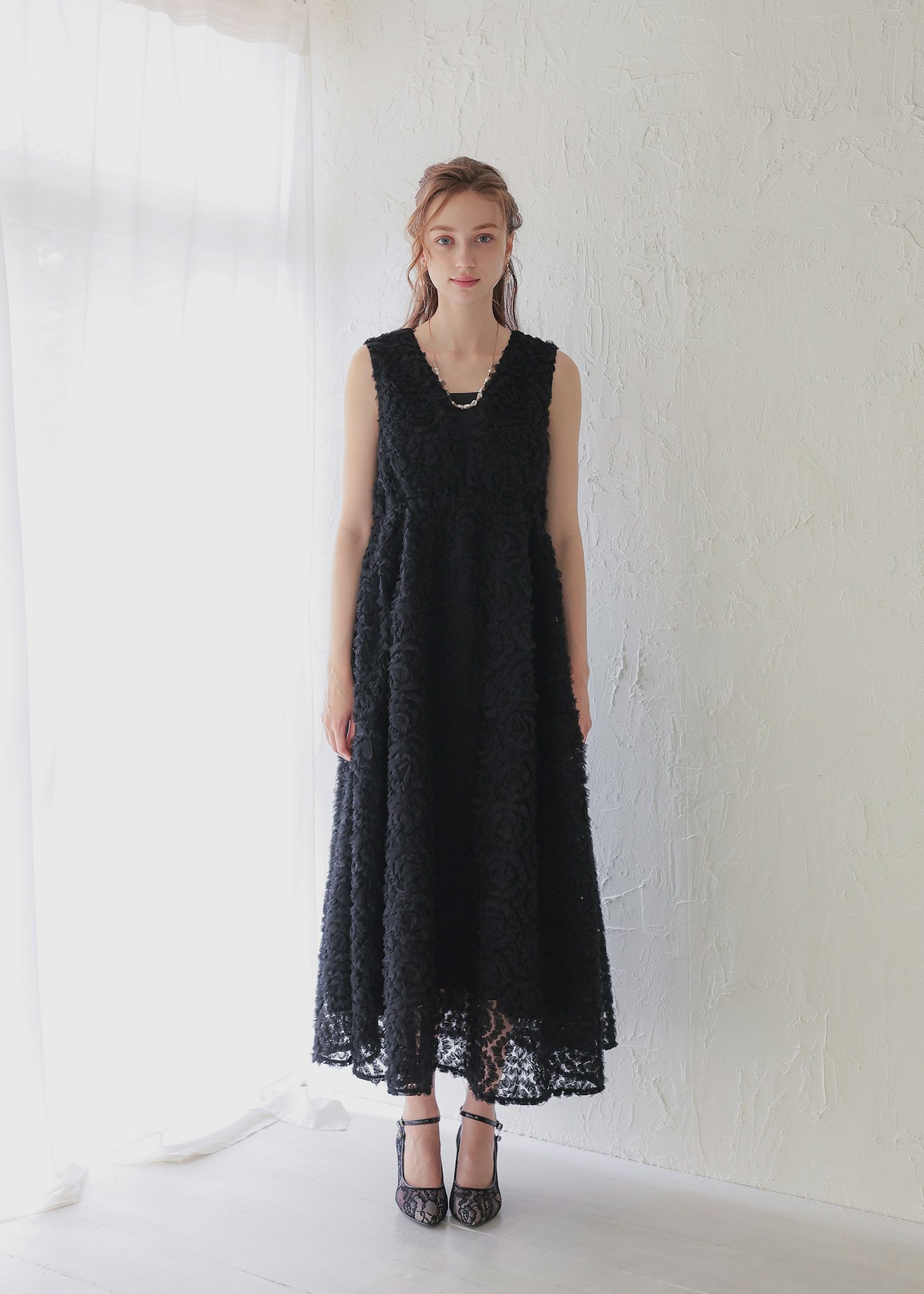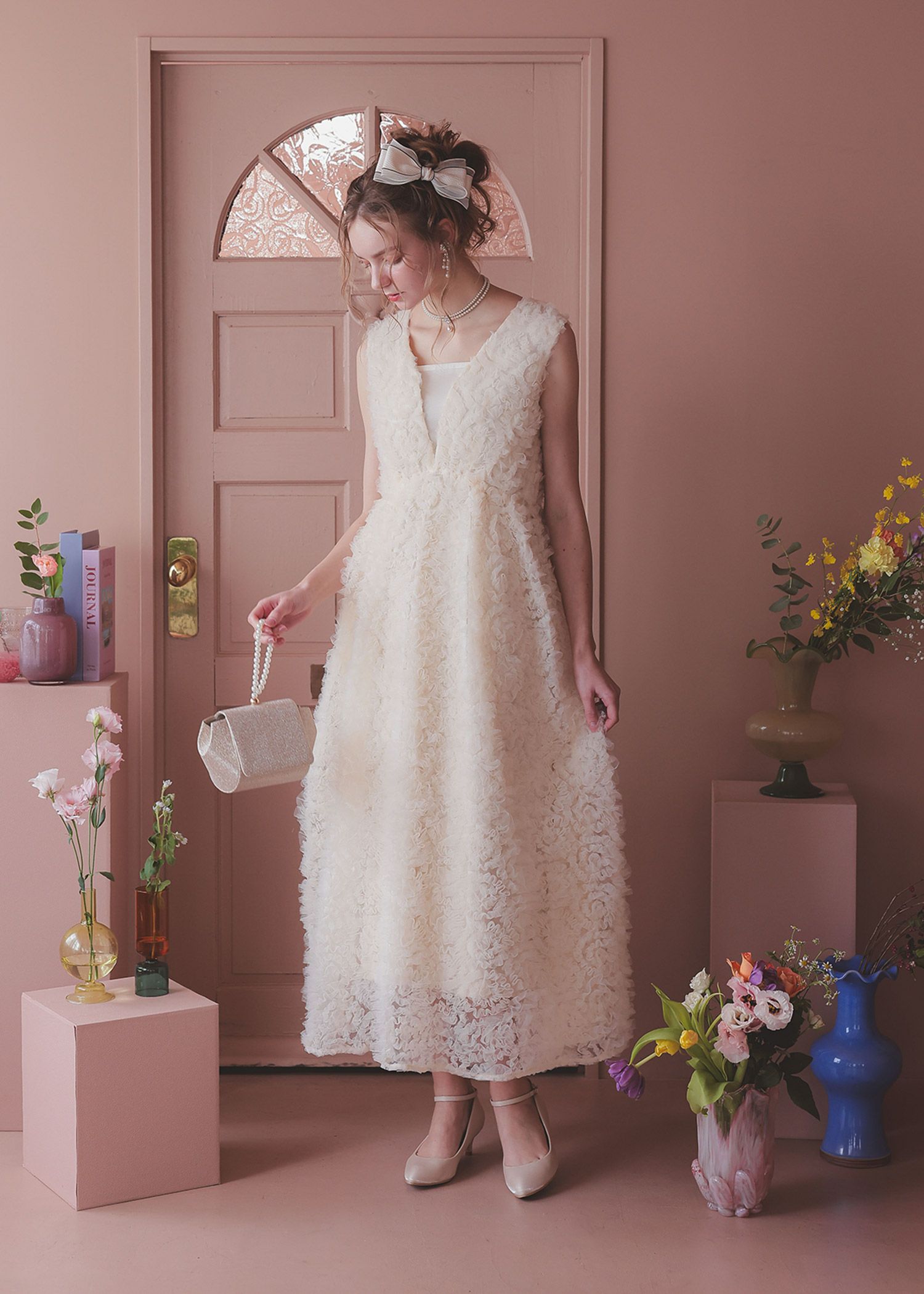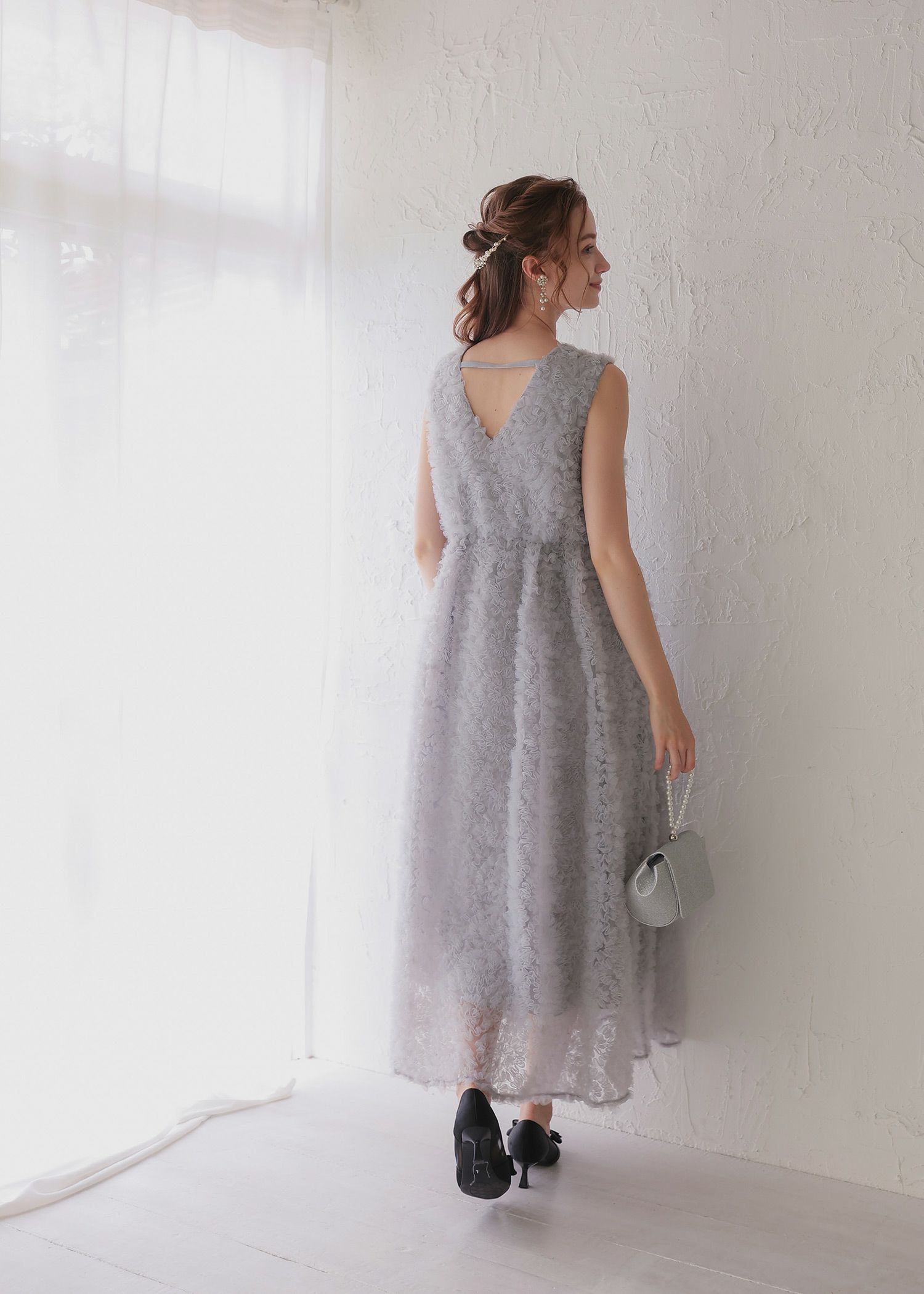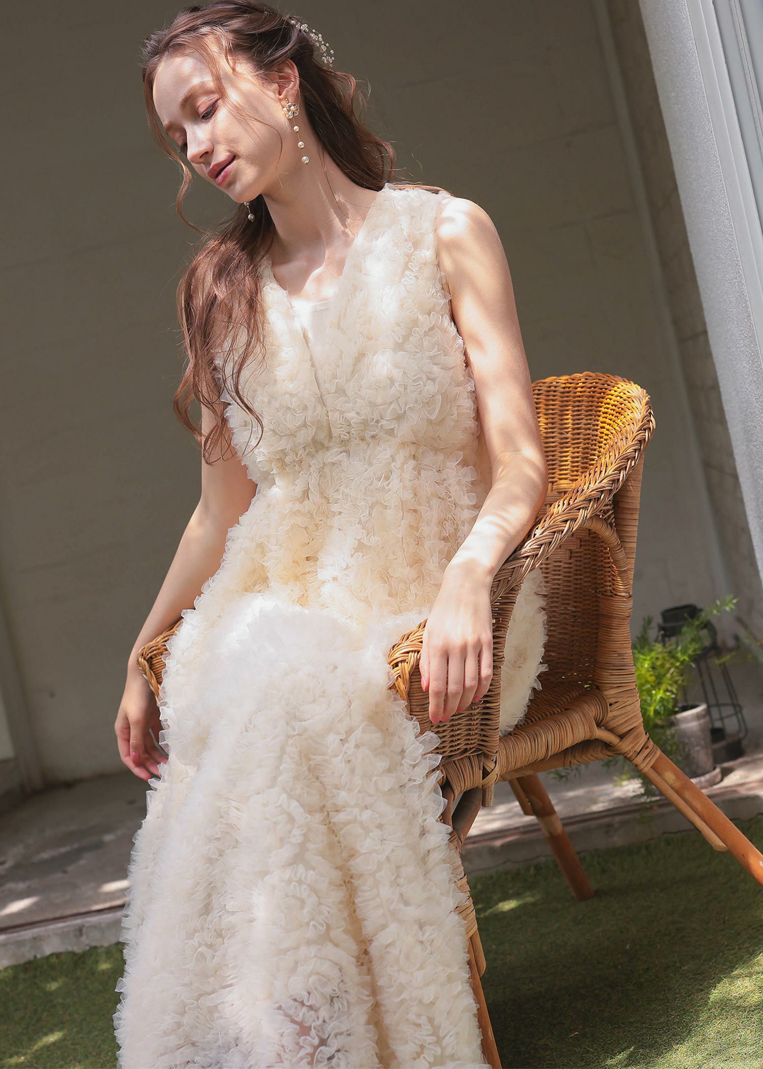 商品説明 全面にフリルをあしらった上品かつ可愛らしさを兼ね備えたホワイトドレス。 フリルチュールレースは他ドレスとは違う生地を使用することで、 他とは被りにくいひとクセ加えた華やかなパーティースタイルに。 Vネック仕様にすることで、程良い抜け感を演出。 インナー付きの為、安心してご着用いただけます。 ファスナーなしで被って着脱できるのでらくちん。 裾に向かってボリューム感が出るデザインでお作りしている為、 着用した際にふんわりと可愛らしく見せることができます。 またウエストゴム入りの為、ストレスフリーなのも拘りぬいた点。 妊娠中(妊娠7ヶ月頃)でも着用可能でございます♡ マタニティフォトなどにもお使い可能です。 エクリュは花嫁さんの二次会や前撮りなどご自身が主役のシーンで。 ブラックはナイトウェディングやディナーシーンに映えるドレスです。 ※ノースリーブデザインでお作りしている為、結婚式の場合は、羽織りなどで肩を隠してご着用ください。 ※ハンガー掛けの商品画像が実際の商品のお色味に近くなっております。 ※商品画像は、光の当たり具合やパソコンなどの閲覧環境により、 実際の色味と異なって見える場合がございます。予めご了承ください。 モデル着用サイズ 172cm/Mサイズ おすすめのシーン カジュアルな結婚式・二次会・お呼ばれ・成人式・同窓会・ 女子会・謝恩会 パーティー・演奏会・お食事会など多様なシーンのコーディネートに使えます。 商品詳細 【備考】 ・インナー付き ・透け感なし ・ウエストゴム入り ・伸縮性あり 洗濯方法:クリーニング店にご相談ください。 ※その他お取り扱いに関しましては、商品に付属のアテンションタグをご覧ください。 原産国:中国 お問い合わせ品番:25564 着用モデル身長172cm 着丈肩幅バストウエストヒップ袖丈 ワンピース130369074---- インナー11592(前)108(後ろ)-------- 単位(cm) ▼着用サイズ mode lsize 外国人着用モデル身長 174cm ▼着用サイズ 全てMsize staff着用/身長153cm staff着用/身長158cm 着丈ガイド REVIEW レビュー WEB限定商品 1月末~2月上旬再入荷 Dorry Doll フリルチュールドレス 当店特別価格 ¥ 26,400 税込 商品番号 25564 エクリュ・ブラックは【1月末~2月上旬】再入荷予定でございます。 4.00 1 り 1 購入者 20代 女性 投稿日 2025/11/18 画像で見るよりもチュールがふわふわしていて、とっても可愛かったです! ウエストの部分がゴムで伸びやすく着やすかったのですが、少し着膨れして見えてしまうため中に調節できる部分があったらもっとよかったなと思いました! すべてのレビューを見る レビューを書く [ 240 ポイント進呈 ] 明日09時00分までのご注文で2026/01/17(土)に佐川急便でお届けします。 この地域へのお届け日は表示できません 大阪府 お届け先を変更 02_エクリュ M 在庫切れ お気に入りに登録する 再入荷お知らせ 75_グレー M お気に入りに登録する カートに入れる 99_ブラック M 在庫切れ お気に入りに登録する 再入荷お知らせ 商品についてのお問い合わせ 商品詳細 商品説明 全面にフリルをあしらった上品かつ可愛らしさを兼ね備えたホワイトドレス。 フリルチュールレースは他ドレスとは違う生地を使用することで、 他とは被りにくいひとクセ加えた華やかなパーティースタイルに。 Vネック仕様にすることで、程良い抜け感を演出。 インナー付きの為、安心してご着用いただけます。 ファスナーなしで被って着脱できるのでらくちん。 裾に向かってボリューム感が出るデザインでお作りしている為、 着用した際にふんわりと可愛らしく見せることができます。 またウエストゴム入りの為、ストレスフリーなのも拘りぬいた点。 妊娠中(妊娠7ヶ月頃)でも着用可能でございます♡ マタニティフォトなどにもお使い可能です。 エクリュは花嫁さんの二次会や前撮りなどご自身が主役のシーンで。 ブラックはナイトウェディングやディナーシーンに映えるドレスです。 ※ノースリーブデザインでお作りしている為、結婚式の場合は、羽織りなどで肩を隠してご着用ください。 ※ハンガー掛けの商品画像が実際の商品のお色味に近くなっております。 ※商品画像は、光の当たり具合やパソコンなどの閲覧環境により、 実際の色味と異なって見える場合がございます。予めご了承ください。 モデル着用サイズ 172cm/Mサイズ おすすめのシーン カジュアルな結婚式・二次会・お呼ばれ・成人式・同窓会・ 女子会・謝恩会 パーティー・演奏会・お食事会など多様なシーンのコーディネートに使えます。 商品詳細 【備考】 ・インナー付き ・透け感なし ・ウエストゴム入り ・伸縮性あり 洗濯方法:クリーニング店にご相談ください。 ※その他お取り扱いに関しましては、商品に付属のアテンションタグをご覧ください。 原産国:中国 お問い合わせ品番:25564 着用モデル身長172cm 素材 材質 表地 ナイロン100% 裏地 ポリエステル96% ポリウレタン4% 厚地 薄地 透ける 透けない 柔らかい 固い 光沢 マット 洗濯方法:クリーニン