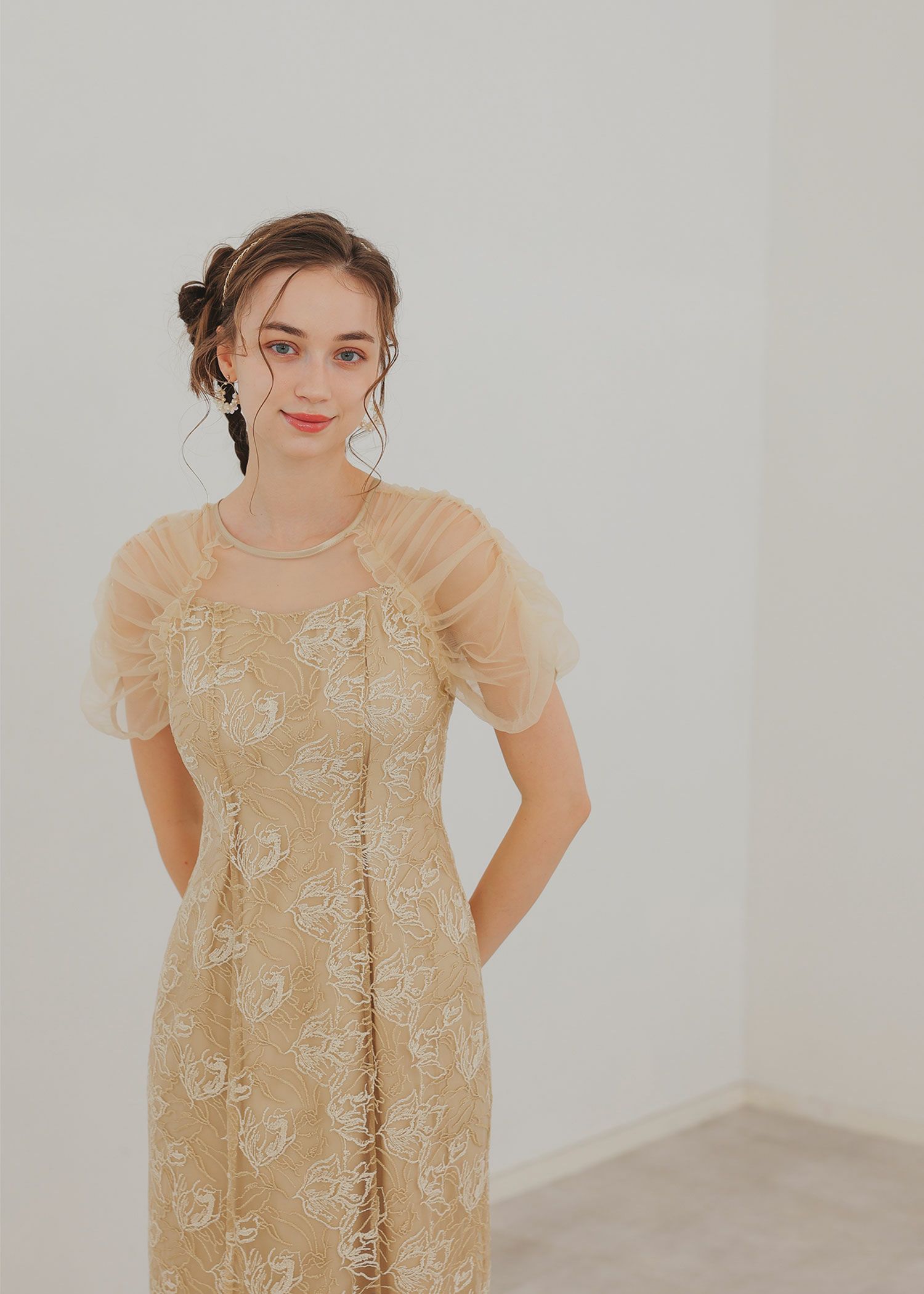 商品説明 フラワー刺繍と落ち着いたカラーがフェミニンさを醸し出すドレス。 刺繍糸は2色用いることで、立体さを演出し存在感のあるフラワー刺繍に仕上げました。 袖は程よくギャザーを寄せてふんわりとさせる事で肩回りを華奢みせ。 お袖~デコルテ部分は程よいシアー感にすることで、軽やかさと女性らしさをプラス。 後ろスリット入りの為、足さばきも楽ちんなのも嬉しいポイント。 結婚式にはもちろんのこと、同窓会や、演奏会の衣装などにもぴったりな華やかな1点となっております。 ・華やかなイエロー ・大人っぽいグレージュ ・落ち着いた印象のブルー 以上の3色展開でご用意いたしました。 ※ハンガー掛けの商品画像が実際の商品のお色味に近くなっております。 ※商品画像は、光の当たり具合やパソコンなどの閲覧環境により、 実際の色味と異なって見える場合がございます。予めご了承ください。 おすすめのシーン カジュアルな結婚式・二次会・お呼ばれ・成人式・同窓会・ 女子会・謝恩会 パーティー・演奏会・お食事会など多様なシーンのコーディネートに使えます。 商品詳細 【備考】 ・裏地あり ・バックファスナー仕様 ・伸縮性なし ・後ろスリットあり 洗濯方法:クリーニング店にご相談ください。 ※その他お取り扱いに関しましては、商品に付属のアテンションタグをご覧ください。 原産国:中国 お問い合わせ品番:25571 着丈肩幅バストウエストヒップ袖丈 M124--9075102-- L127--9479106-- 単位(cm) ▼着用サイズ modl size 外国人着用モデル身長172cm ▼着用サイズ 全てMsize staff着用/身長153cm (グレージュ・ブルー) staff着用/身長158cm (イエロー) インスタライブにて160㎝staffがLサイズ着用しております♪ 着丈ガイド REVIEW レビュー WEB限定商品 返品・交換対象外 クーポン対象外 SALE 30%OFF Dorry Doll フラワーチュールギャザーパフドレス 定価 ¥ 22,000 のところ 当店特別価格 ¥ 15,400 税込 商品番号 25571 レビューを書く [ 140 ポイント進呈 ] 明日09時00分までのご注文で2026/01/27(火)に佐川急便でお届けします。 この地域へのお届け日は表示できません 大阪府 お届け先を変更 09_グレージュ M 残りわずか お気に入りに登録する カートに入れる L 残りわずか お気に入りに登録する カートに入れる 10_イエロー M 残りわずか お気に入りに登録する カートに入れる L 残りわずか お気に入りに登録する カートに入れる 40_ブルー M 残りわずか お気に入りに登録する カートに入れる L 残りわずか お気に入りに登録する カートに入れる 商品についてのお問い合わせ 商品詳細 商品説明 フラワー刺繍と落ち着いたカラーがフェミニンさを醸し出すドレス。 刺繍糸は2色用いることで、立体さを演出し存在感のあるフラワー刺繍に仕上げました。 袖は程よくギャザーを寄せてふんわりとさせる事で肩回りを華奢みせ。 お袖~デコルテ部分は程よいシアー感にすることで、軽やかさと女性らしさをプラス。 後ろスリット入りの為、足さばきも楽ちんなのも嬉しいポイント。 結婚式にはもちろんのこと、同窓会や、演奏会の衣装などにもぴったりな華やかな1点となっております。 ・華やかなイエロー ・大人っぽいグレージュ ・落ち着いた印象のブルー 以上の3色展開でご用意いたしました。 ※ハンガー掛けの商品画像が実際の商品のお色味に近くなっております。 ※商品画像は、光の当たり具合やパソコンなどの閲覧環境により、 実際の色味と異なって見える場合がございます。予めご了承ください。 おすすめのシーン カジュアルな結婚式・二次会・お呼ばれ・成人式・同窓会・ 女子会・謝恩会 パーティー・演奏会・お食事会など多様なシーンのコーディネートに使えます。 商品詳細 【備考】 ・裏地あり ・バックファスナー仕様 ・伸縮性なし ・後ろスリットあり 洗濯方法:クリーニング店にご相談ください。 ※その他お取り扱いに関しましては、商品に付属のアテンションタグをご覧ください。 原産国:中国 お問い合わせ品番:25571 素材 材質 レース地 基布 ナイロン 100% 刺繍糸 ポリエステル 100% サテン地 ポリエステル100% チュール地 ナイロン100% 厚地 薄地 透ける 透けない 柔らかい 固い 光沢 マット 洗濯方法:クリーニング店にご相談ください。 ※その他お取り扱いに関しましては、商品に付属のアテンションタグをご覧ください。 サイズ 着丈肩幅バストウエストヒップ袖丈 M124--9075102-- L127--9479106-- 単位(cm) ▼着用サイズ modl size 外国人着用モデル身長172cm ▼着用サイズ 全てMsize staff着用/身長153cm (グレージュ・ブルー) staff着用/身長158cm (イエロー) インスタライブにて160㎝staffがLサイズ着用しております♪ 着丈ガイド REVIEW レビュー RECOMMENDATIONあなたへのおすすめアイテム HISTORY最近チェックしたアイテム
