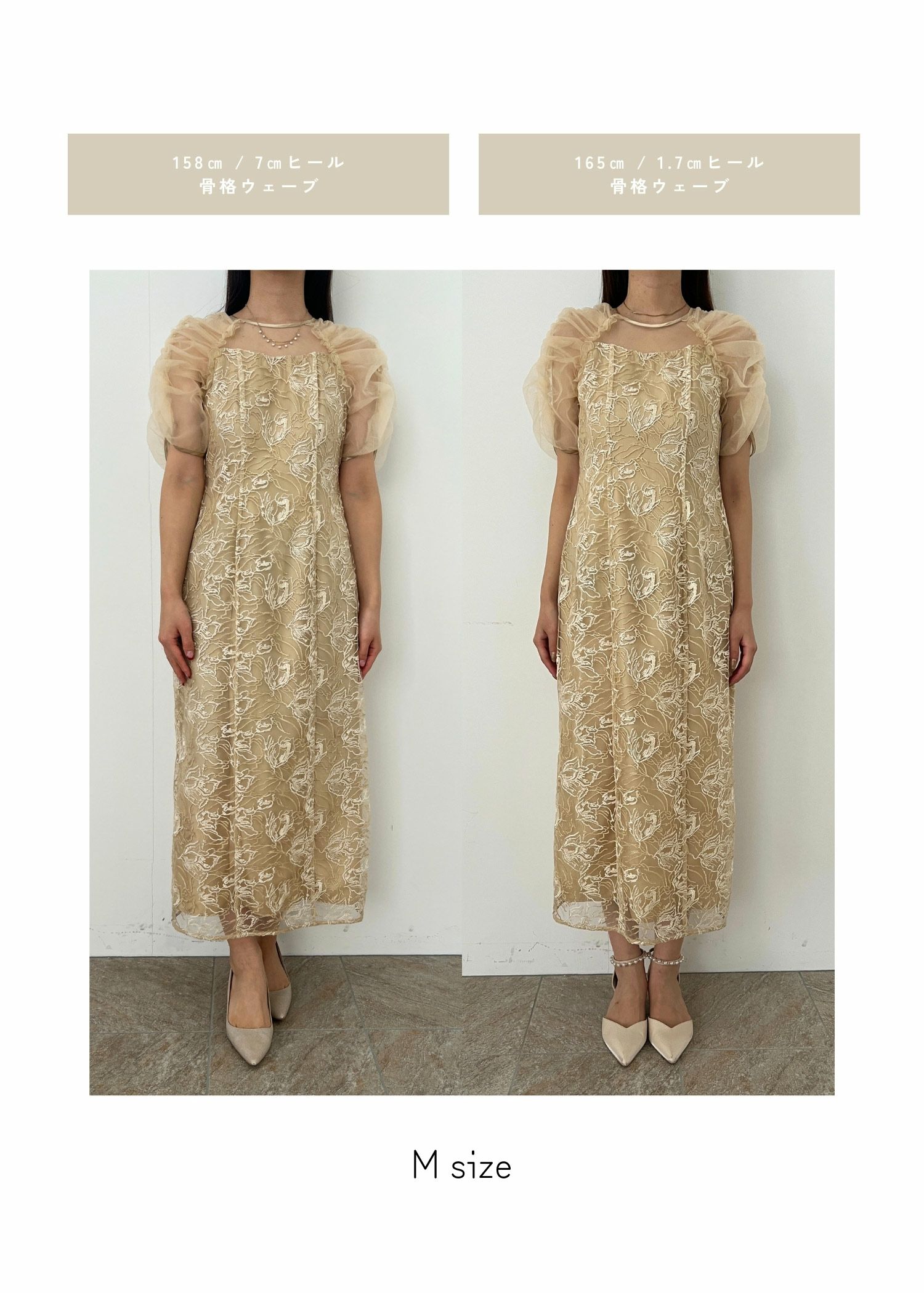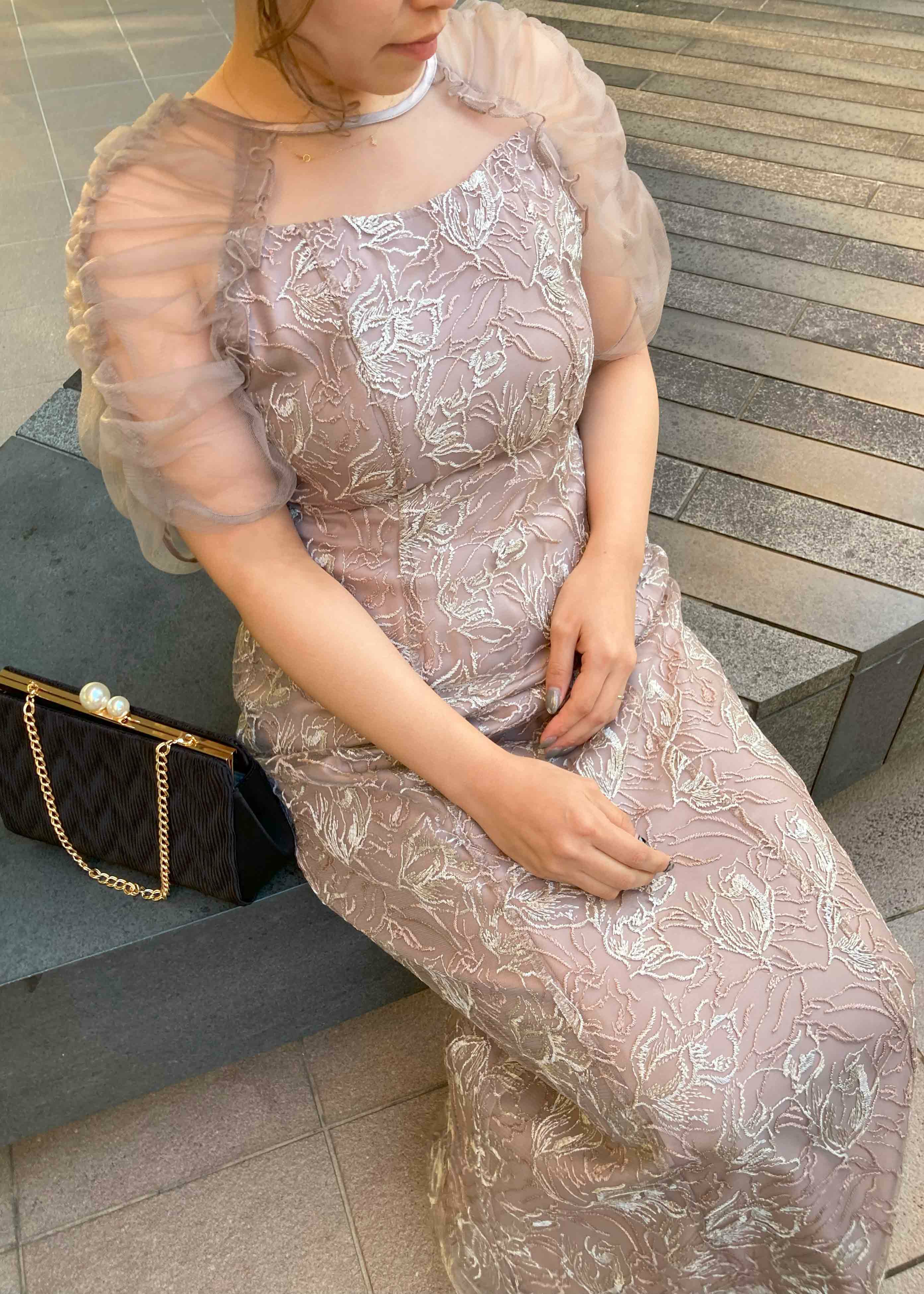 商品説明 フラワー刺繍と落ち着いたカラーがフェミニンさを醸し出すドレス。 刺繍糸は2色用いることで、立体さを演出し存在感のあるフラワー刺繍に仕上げました。 袖は程よくギャザーを寄せてふんわりとさせる事で肩回りを華奢みせ。 お袖~デコルテ部分は程よいシアー感にすることで、軽やかさと女性らしさをプラス。 後ろスリット入りの為、足さばきも楽ちんなのも嬉しいポイント。 結婚式にはもちろんのこと、同窓会や、演奏会の衣装などにもぴったりな華やかな1点となっております。 ・華やかなイエロー ・大人っぽいグレージュ ・落ち着いた印象のブルー 以上の3色展開でご用意いたしました。 ※ハンガー掛けの商品画像が実際の商品のお色味に近くなっております。 ※商品画像は、光の当たり具合やパソコンなどの閲覧環境により、 実際の色味と異なって見える場合がございます。予めご了承ください。 おすすめのシーン カジュアルな結婚式・二次会・お呼ばれ・成人式・同窓会・ 女子会・謝恩会 パーティー・演奏会・お食事会など多様なシーンのコーディネートに使えます。 商品詳細 【備考】 ・裏地あり ・バックファスナー仕様 ・伸縮性なし ・後ろスリットあり 洗濯方法:クリーニング店にご相談ください。 ※その他お取り扱いに関しましては、商品に付属のアテンションタグをご覧ください。 原産国:中国 お問い合わせ品番:25571