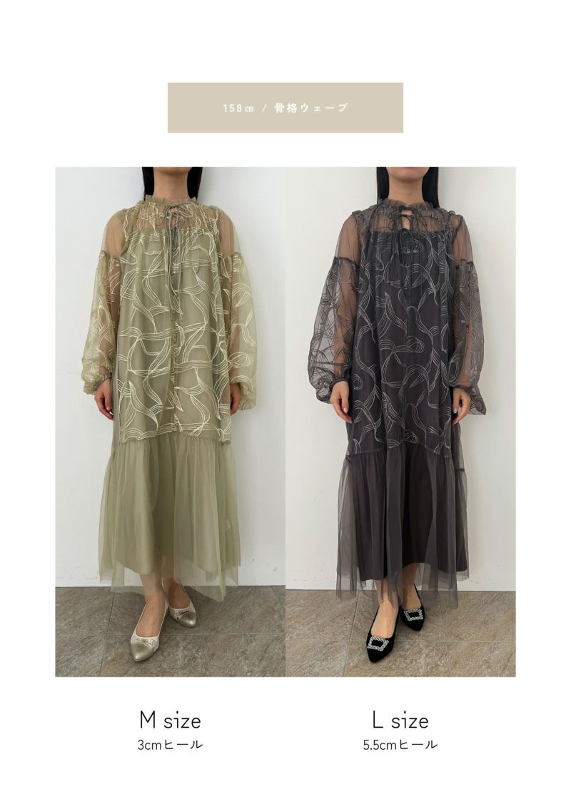 商品説明 存在感を放つ刺繍がポイントのドレス。 ネック部分にはギャザーを施し、シンプルになりすぎず洗練された抜け感を演出。 またストンとしたAラインシルエットでお作りしている為、体型をカバーできます。 動くたびにふんわり広がるスカートが優雅な印象に。 ファスナーなしで被って着脱できるのでらくちん。 インナーワンピースはアジャスター仕様となっている為、ご自身でご希望の着丈に調節できるのも◎ カジュアルなパーティーシーンだけでなく、デイリーにも使える大人のドレス。 デートや食事会など普段使いにもオススメな1着です。 ※ハンガー掛けの商品画像が実際の商品のお色味に近くなっております。 ※商品画像は、光の当たり具合やパソコンなどの閲覧環境により、 実際の色味と異なって見える場合がございます。予めご了承ください。 おすすめのシーン カジュアルな結婚式・二次会・お呼ばれ・成人式・同窓会・ 女子会・謝恩会 パーティー・演奏会・お食事会など多様なシーンのコーディネートに使えます。 商品詳細 【備考】 ・インナーワンピース付き ・インナーワンピースアジャスターで着丈調節可 ・お袖やデコルテ部分透け感あり ・伸縮性なし ・袖口ゴム入り 洗濯方法:クリーニング店にご相談ください。 ※その他お取り扱いに関しましては、商品に付属のアテンションタグをご覧ください。 原産国:中国 お問い合わせ品番:25581 着用モデル身長174cm