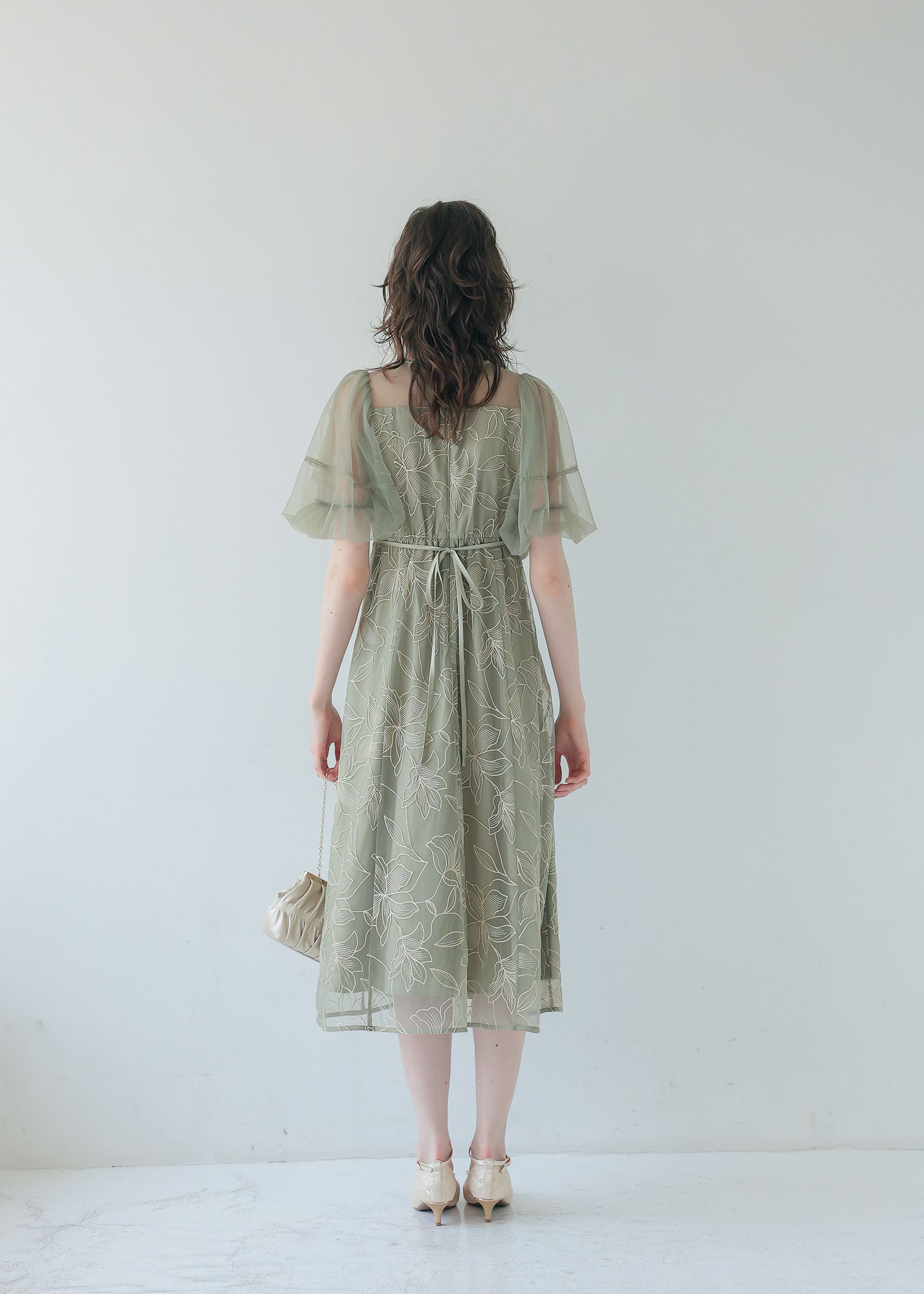 商品説明 目を惹く大ぶりなユリ柄を全身に纏ったオケージョンドレス。 デコルテ部分は程よい透け感のチュールに切り替えて抜け感を。 柔らかいチュールを使用したパフスリーブで二の腕カバーをしつつ上品な印象に。 バックリボンデザインで後ろ姿も抜かりなく。 ウエストから裾にかけてゆるやかなフレアライン。 ウエストリボンでご自身のスタイルに合わせて調整していただけます。 ※ハンガー掛けの商品画像が実際の商品のお色味に近くなっております。 ※商品画像は、光の当たり具合やパソコンなどの閲覧環境により、 実際の色味と異なって見える場合がございます。予めご了承ください。 おすすめのシーン カジュアルな結婚式・1.5次回・二次会・ディナー・同窓会・謝恩会など 多様なシーンのコーディネートに使えます。 商品詳細 【備考】 ・裏地あり ・デコルテと袖に透け感あり ・袖口伸縮性あり ・バックファスナー仕様 洗濯方法:クリーニング店にご相談ください。 ※その他お取り扱いに関しましては、商品に付属のアテンションタグをご覧ください。 原産国:中国
