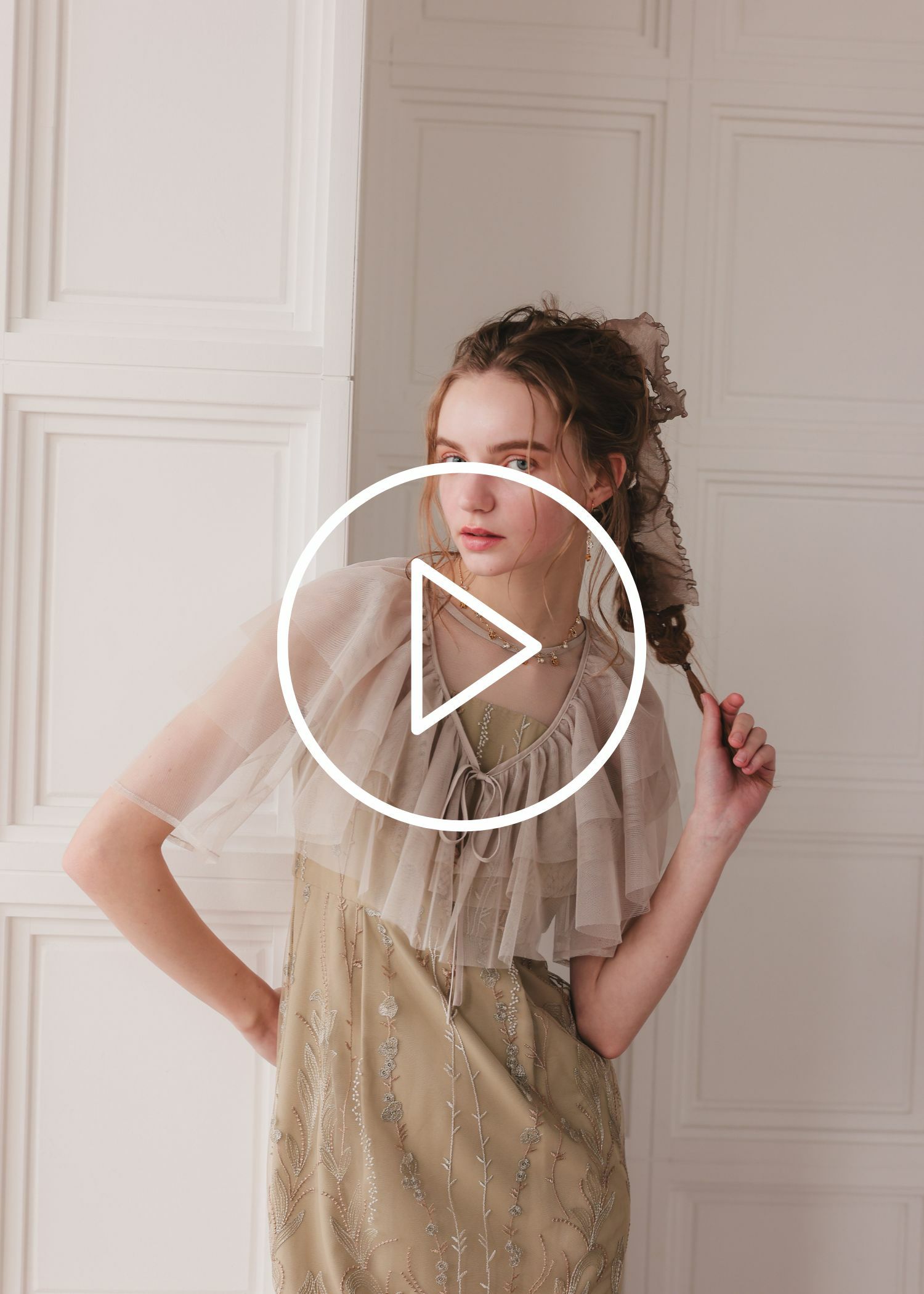 ・デコルテ、袖に透け感あり