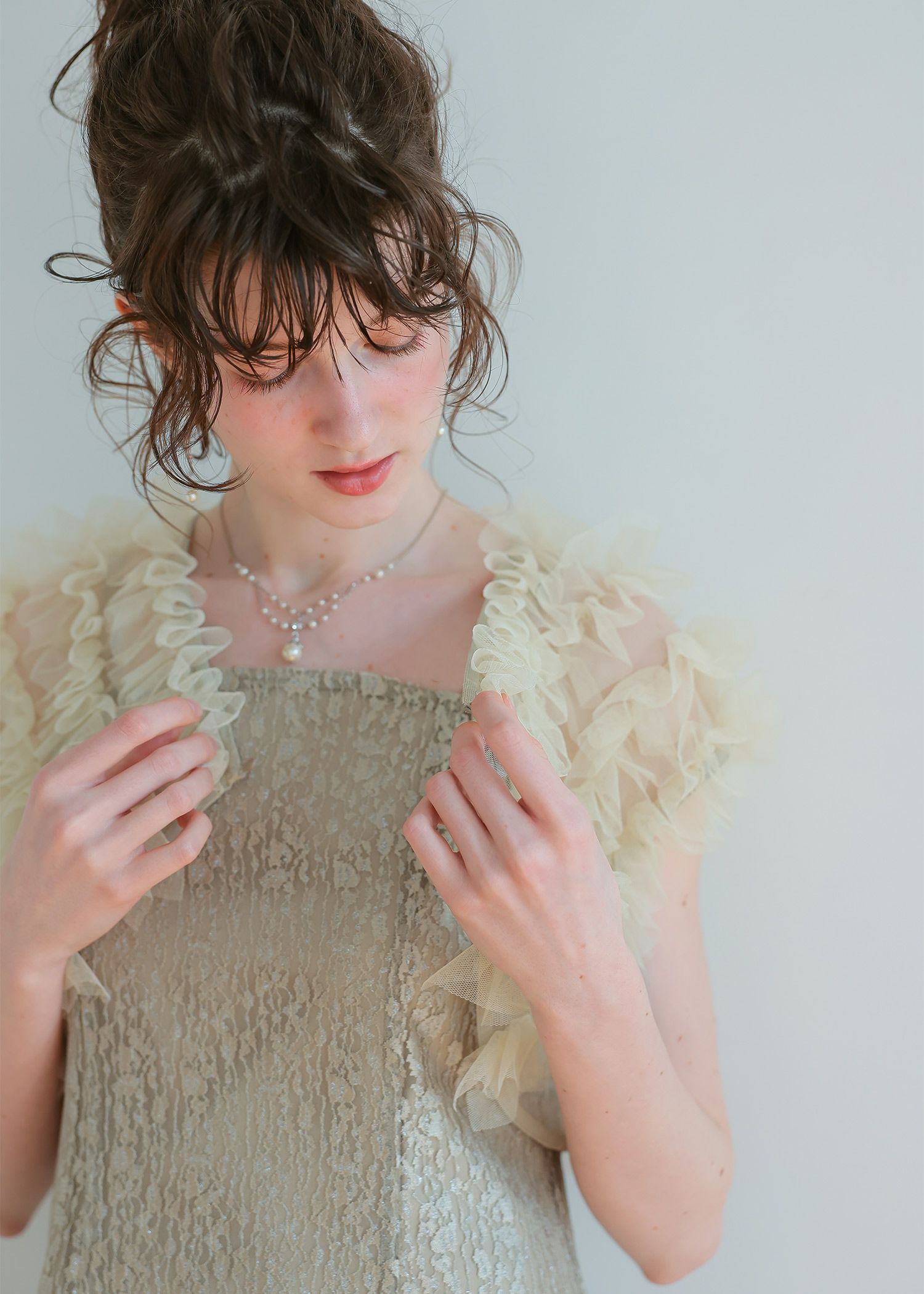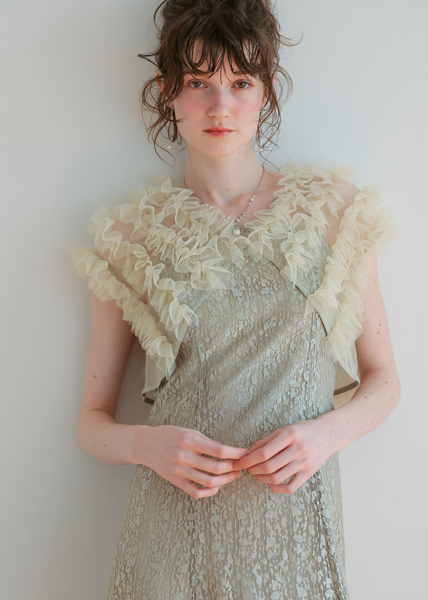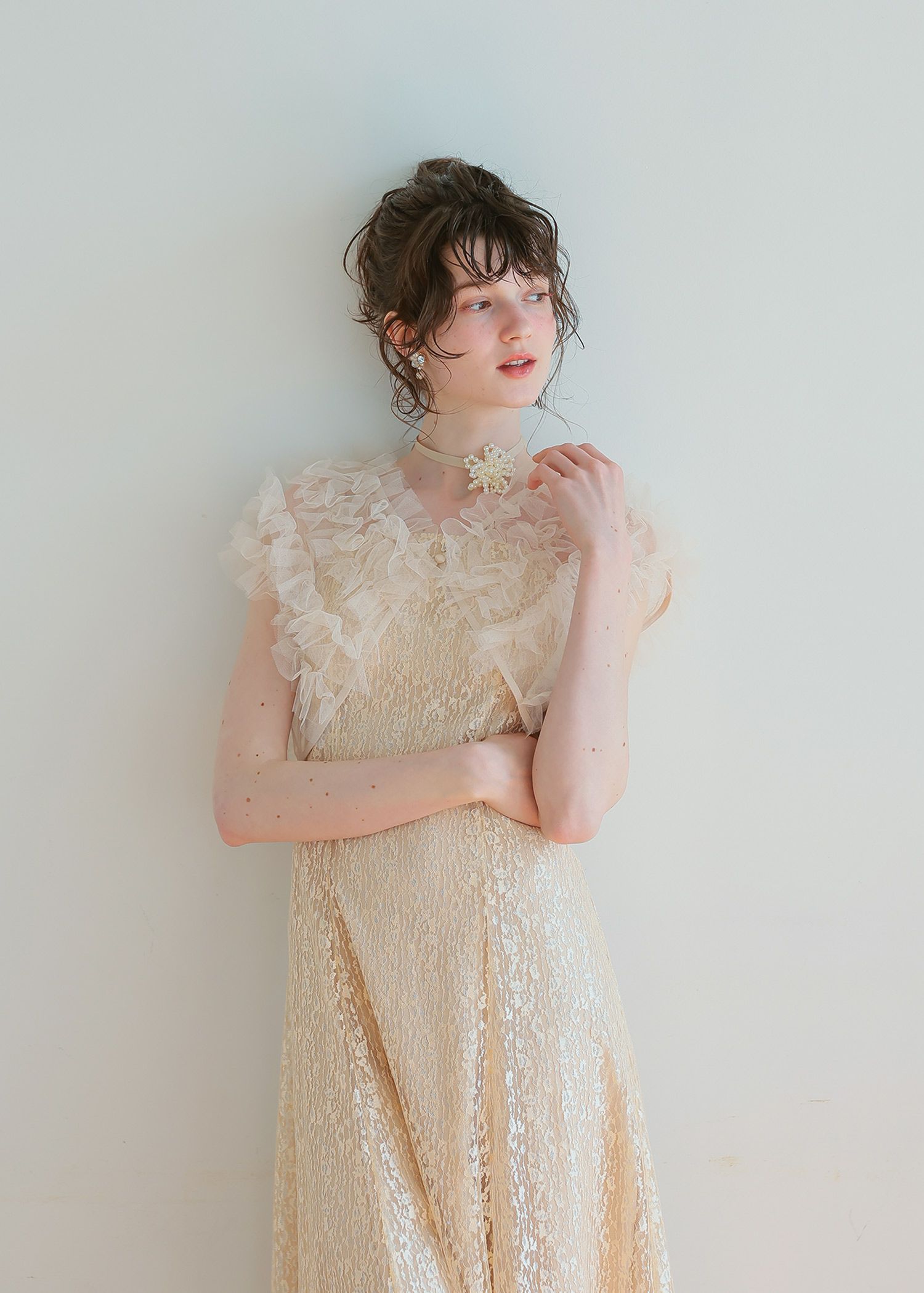 材質 〈ワンピース〉 レース地 ナイロン 100% サテン地 ポリエステル 100% 〈チュールボレロ〉 本体 ポリエステル100% 別布 ポリエステル100% 厚地 薄地 透ける 透けない 柔らかい 固い 光沢 マット 洗濯方法:クリーニング店にご相談ください。 ※その他お取り扱いに関しましては、商品に付属のアテンションタグをご覧ください。