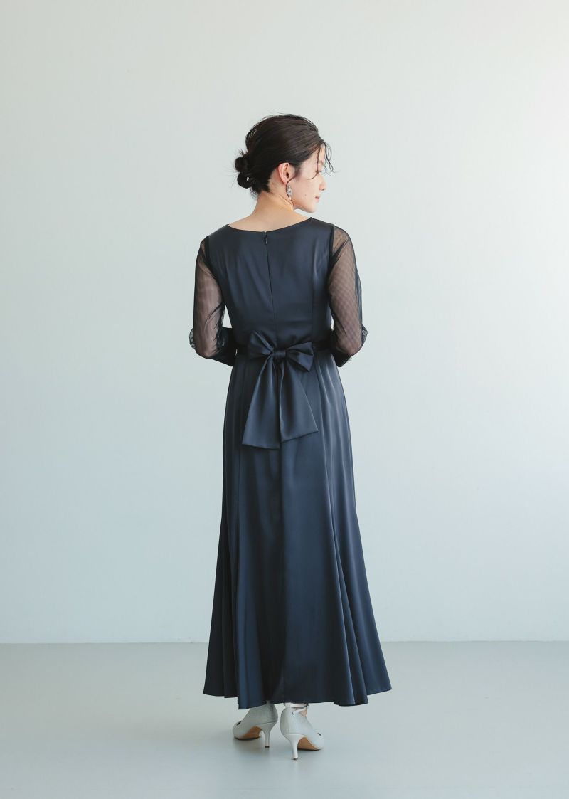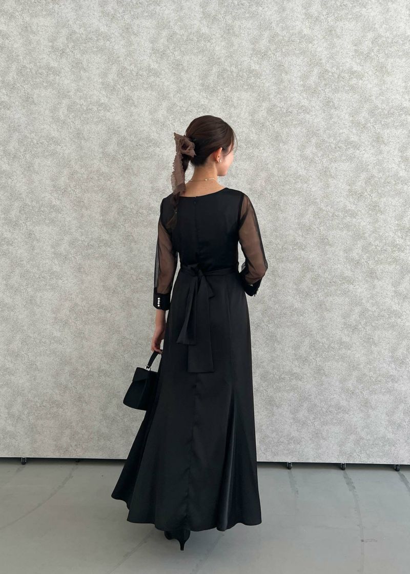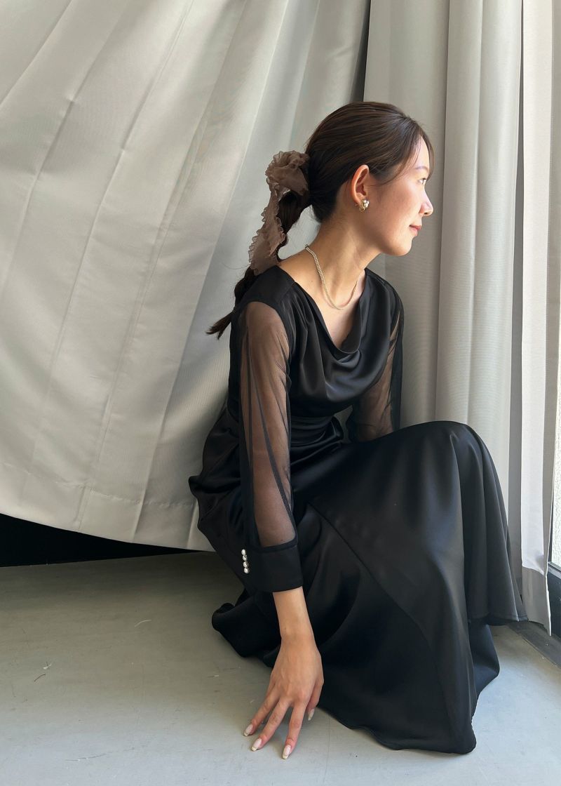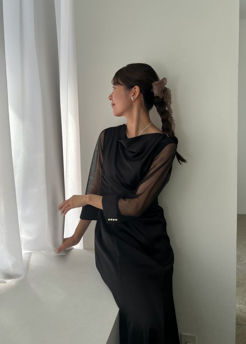 上半身のデザインを引き立たせるように袖はシアー素材で抜け感を表現し