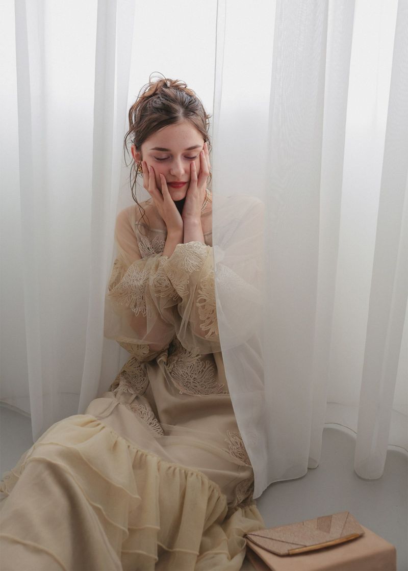 材質 レース地 基布 ナイロン100% 刺繍糸 ポリエステル100% チュール地 ナイロン100% サテン地 ポリエステル100% 厚地 薄地 透ける 透けない 柔らかい 固い 光沢 マット 洗濯方法:クリーニング店にご相談ください。 ※その他お取り扱いに関しましては、商品に付属のアテンションタグをご覧ください。