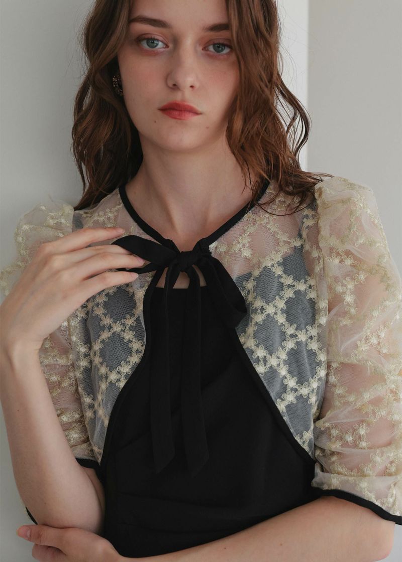 ボレロの素材は、人気のダイヤ―レースを使用し、