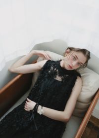 着丈肩幅バストウエストヒップ M1233590101112.6 単位(cm) ▼着用サイズ model size 外国人モデル身長 173 cm ▼全てMサイズ staff着用/身長165cm(エクリュ) staff着用/身長160cm(ブラック) 着丈ガイド