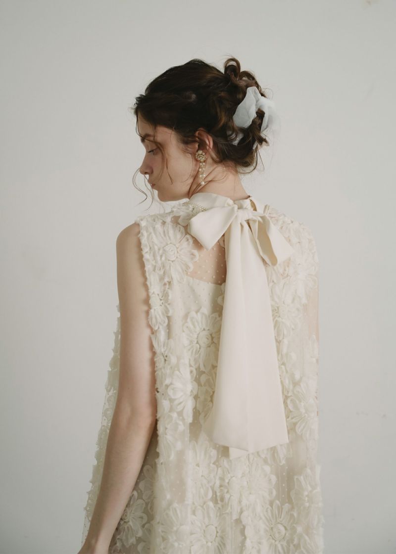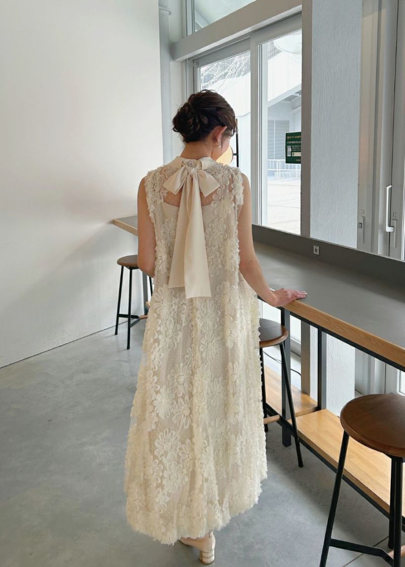 商品説明 立体感のあるデイジーのようなお花柄を全面にあしらった、存在感のある一着。 繊細なチュール素材にフラワーモチーフを重ねることで、 甘さの中にも奥行きを感じさせるデザインです。 裾はふんわりと丸みを持たせたバルーンシルエット。 歩くたびに空気を含むような軽やかな動きが生まれ 特別な日の装いをより印象的に演出します。 バックスタイルには長めのリボンをあしらい、後ろ姿まで抜かりなく。 結ぶ位置や垂れ感で表情が変わり、写真映えも叶えてくれるポイントです。 華やかさとやわらかさを併せ持ち、オケージョンはもちろん 特別なシーンに選びたくなるドレスです。 エクリュは花嫁さんの二次会や前撮りなどご自身が主役のシーンに。 ブラックはナイトウェディングやディナーシーンに映えるドレスです。 ※エクリュは白っぽいお色味のため、結婚式のおよばれ以外のシーンにおすすめです。 ※エクリュは花嫁さんの二次会や前撮りなどにもおすすめです。 ※商品画像は、光の当たり具合やパソコンなどの閲覧環境により、 実際の色味と異なって見える場合がございます。予めご了承ください。 おすすめのシーン カジュアルな結婚式・二次会・お呼ばれ・成人式・同窓会・ 女子会・謝恩会 パーティー・演奏会・お食事会など多様なシーンのコーディネートに使えます。 商品詳細 【備考】 ・裏地付き ・伸縮性なし ・バッグファスナー仕様 ・くるみボタン2つあり ※中の裏地とレースはつながっております。 洗濯方法:クリーニング店にご相談ください。 ※その他お取り扱いに関しましては、商品に付属のアテンションタグをご覧ください。 原産国:中国 お問い合わせ品番:25690