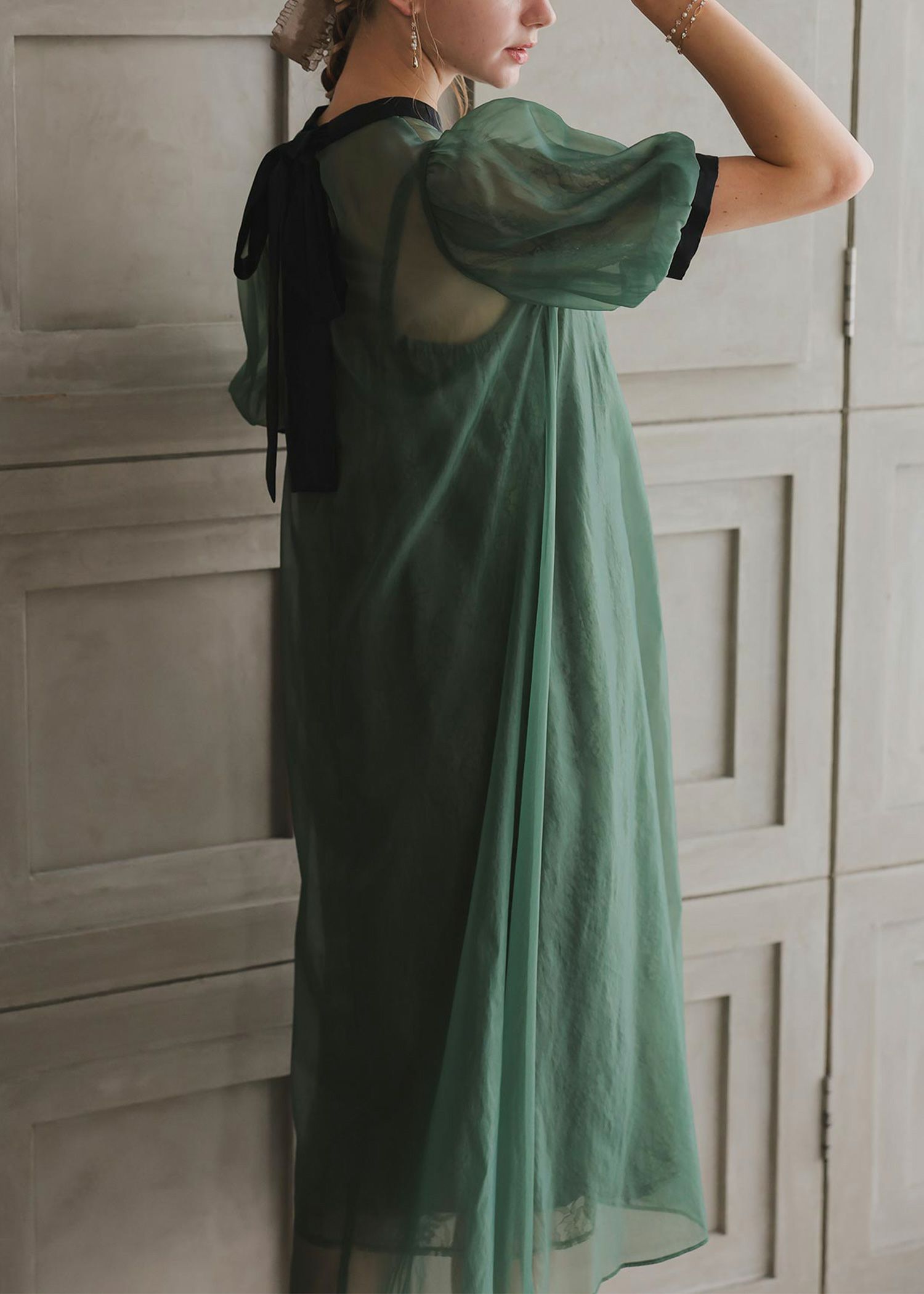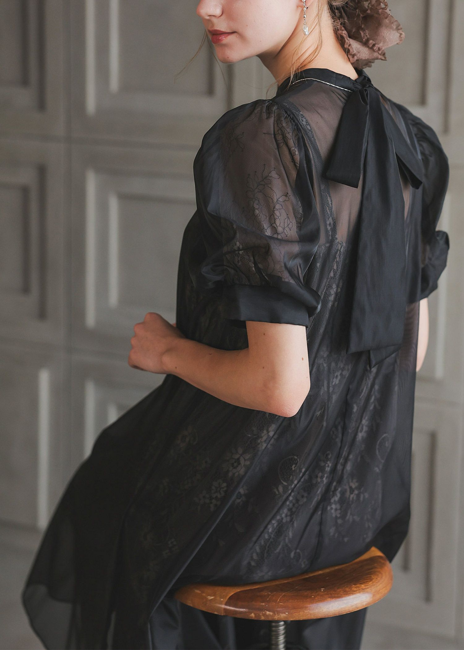 襟のリボンは後ろや前で結んだり、取り外しも可能なので印象を変えられます。