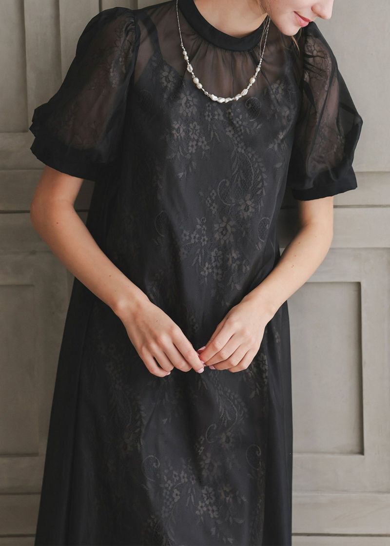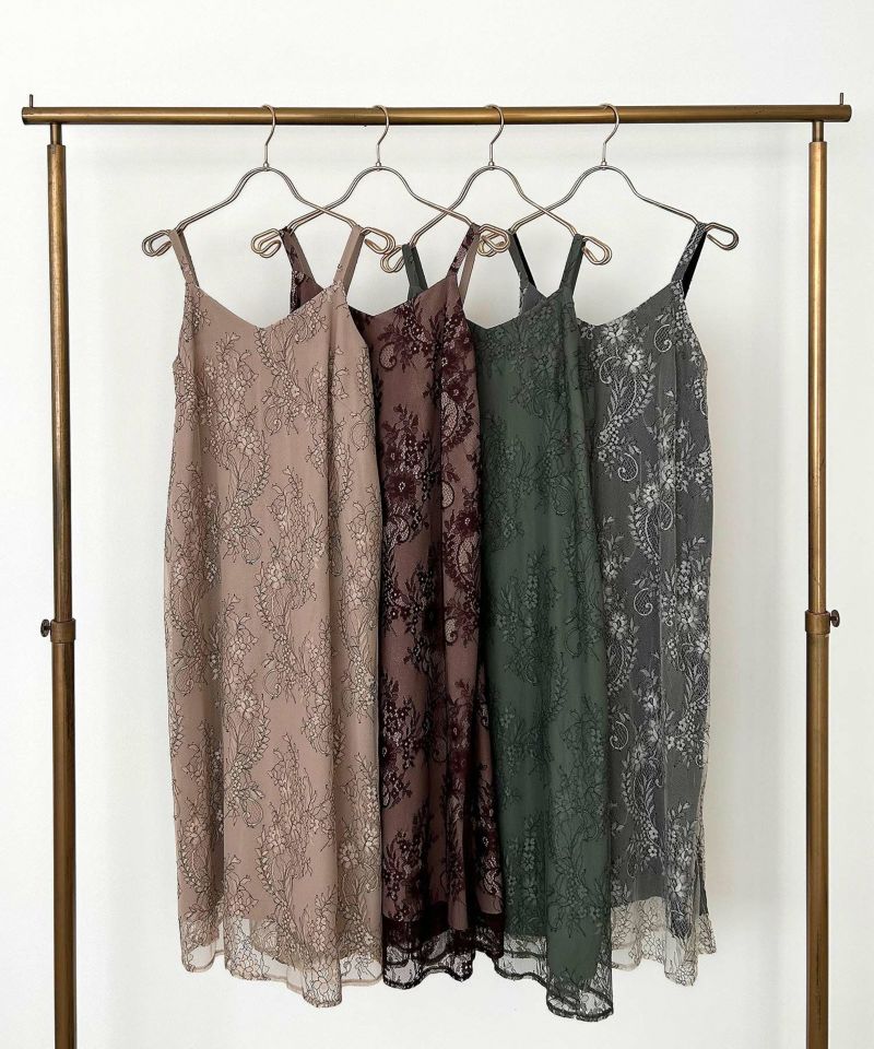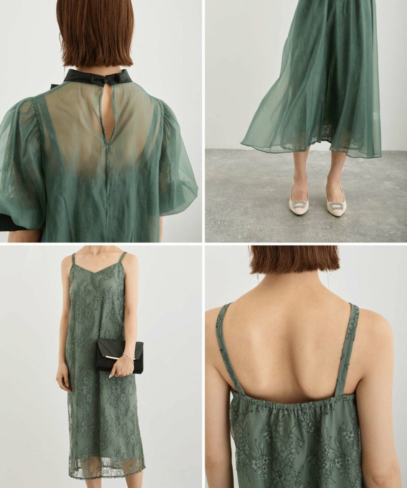 シアーオーバーワンピースと、レースキャミワンピのレイヤードセット商品です。
