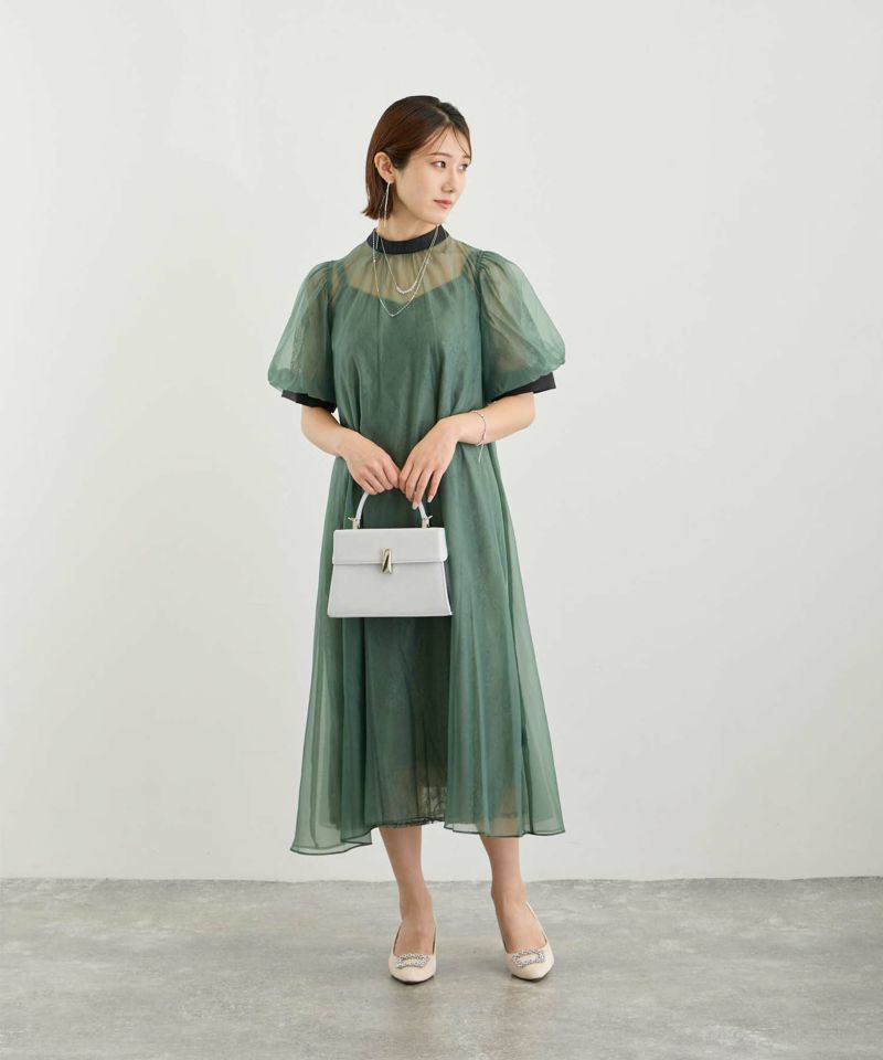 袖はボリュームのあるパフスリーブで二の腕をカバー◎