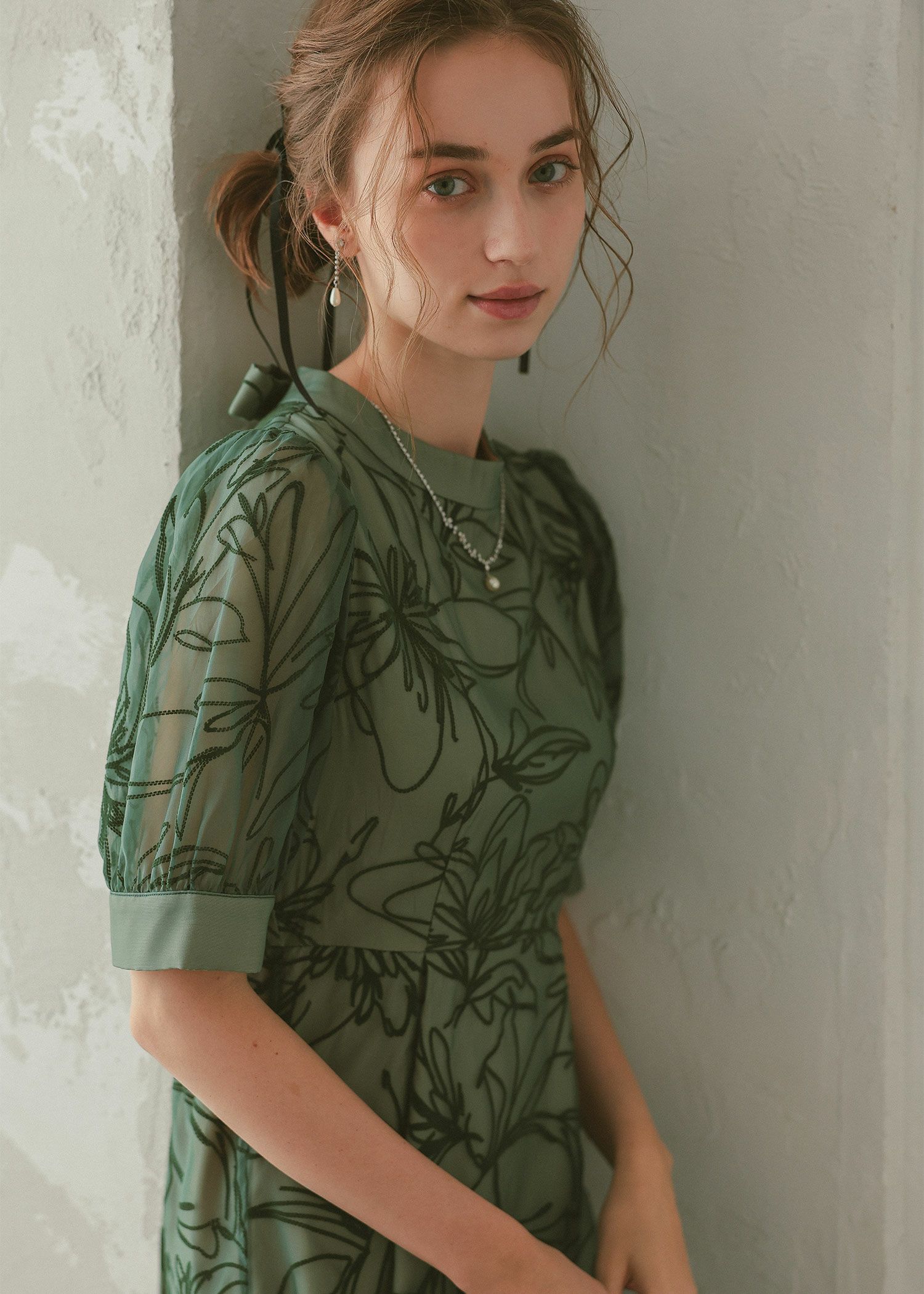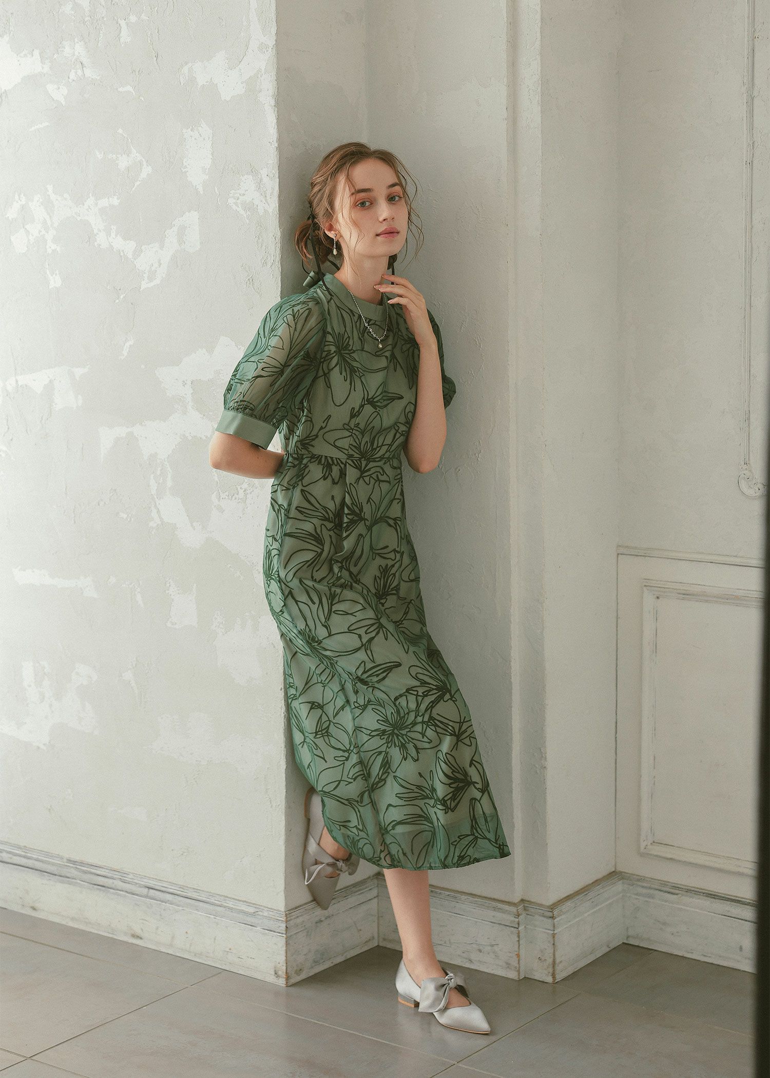 抽象的な線で描かれた花柄なので、可愛らしくなり過ぎず都会的な印象に。