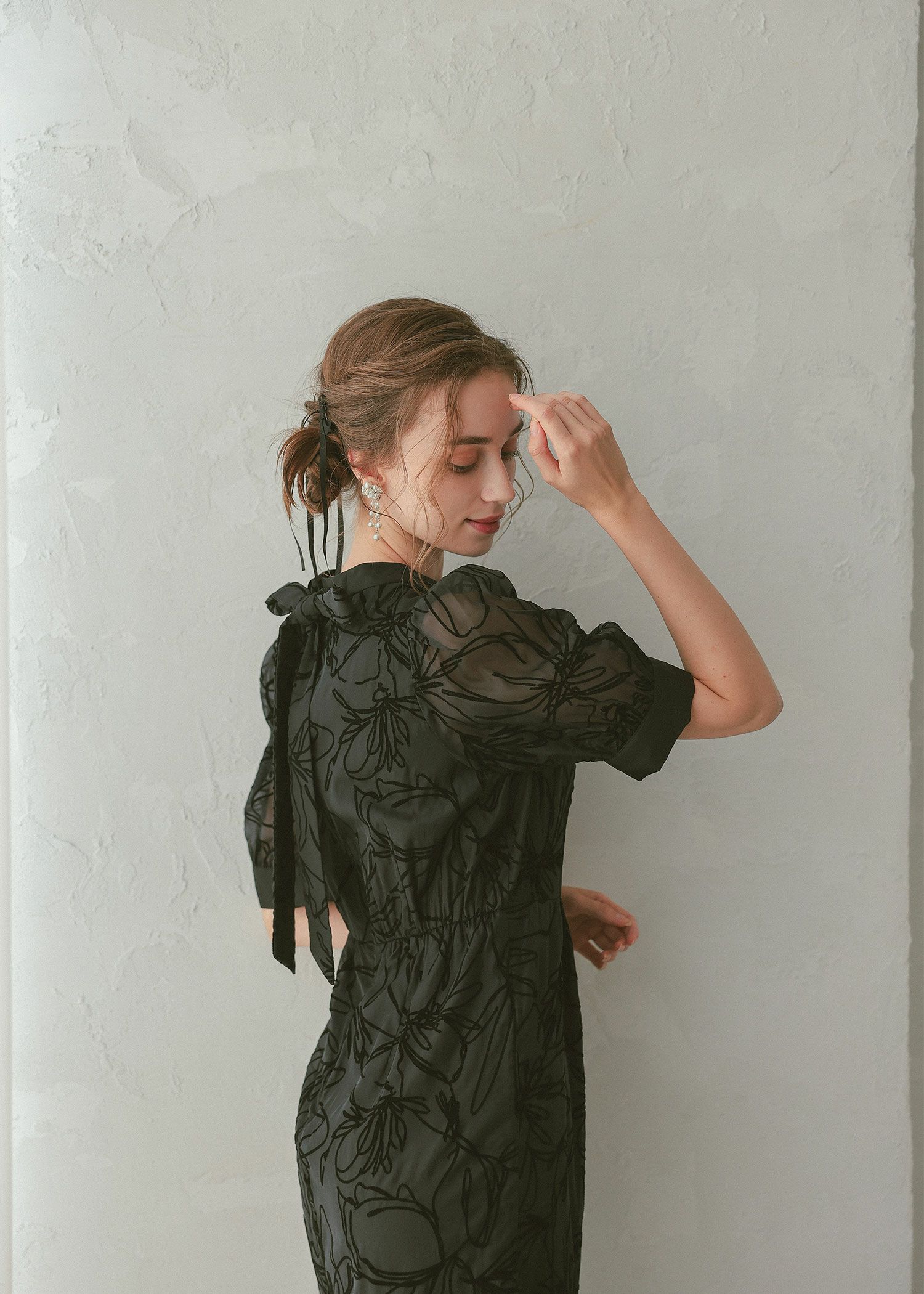 シアーな生地感も相まって、フェミニンさをプラスしてくれ、また二の腕や肩回りの華奢見せ効果も◎