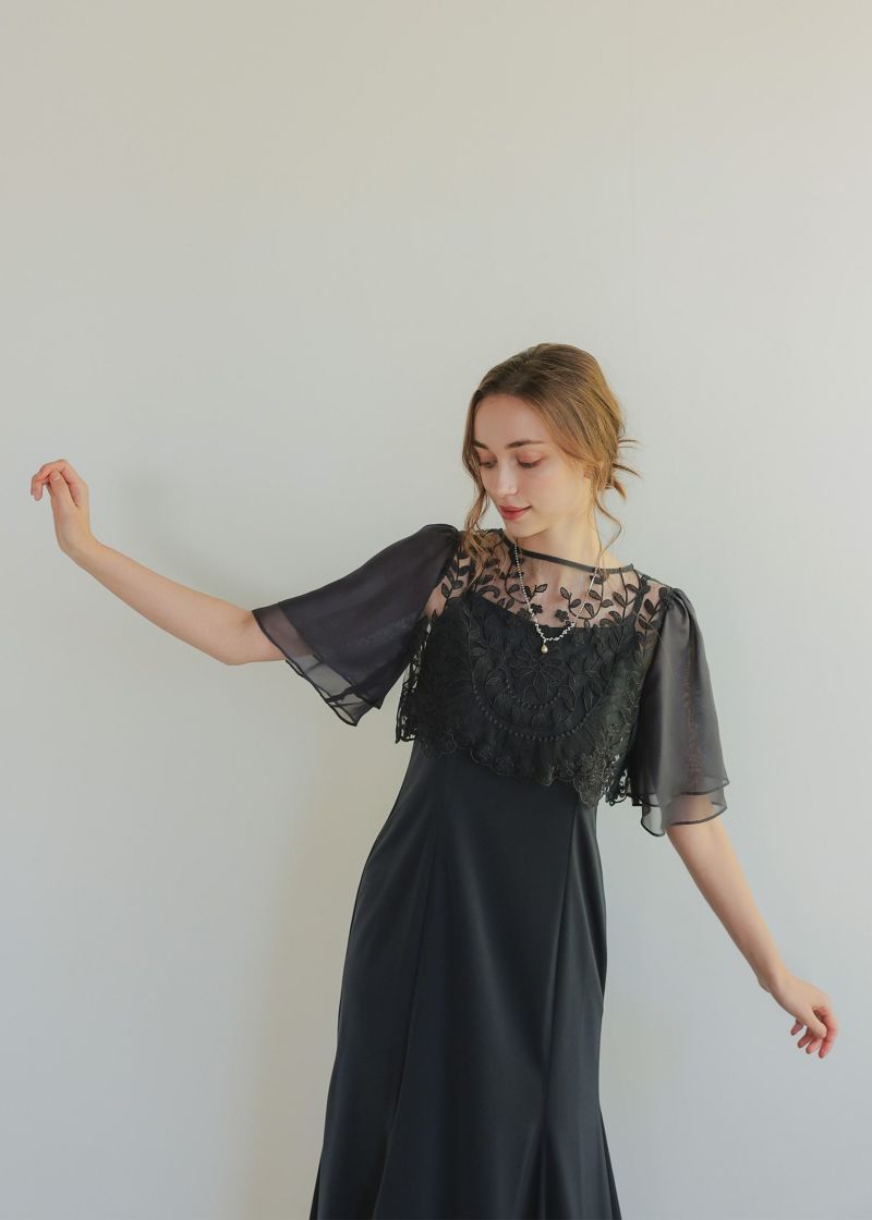 華やかなシーンではボレロの羽織りがなくても一枚で着用いただけるのも魅力です。