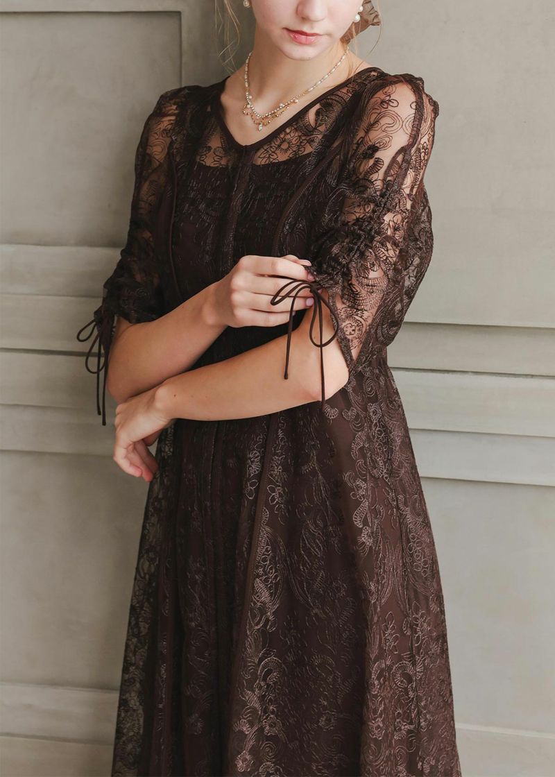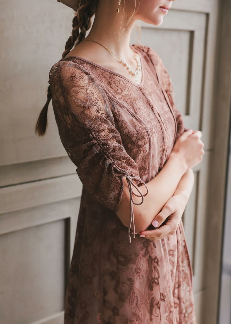 繊細な刺繍レースが女性らしい雰囲気を演出。