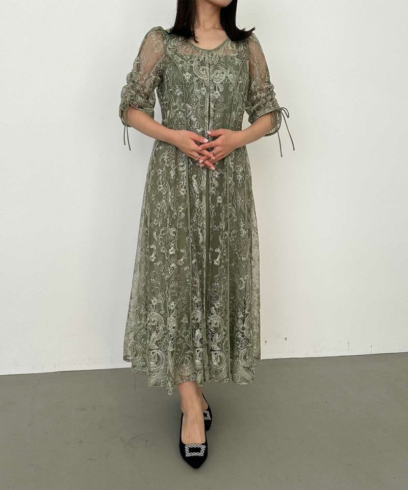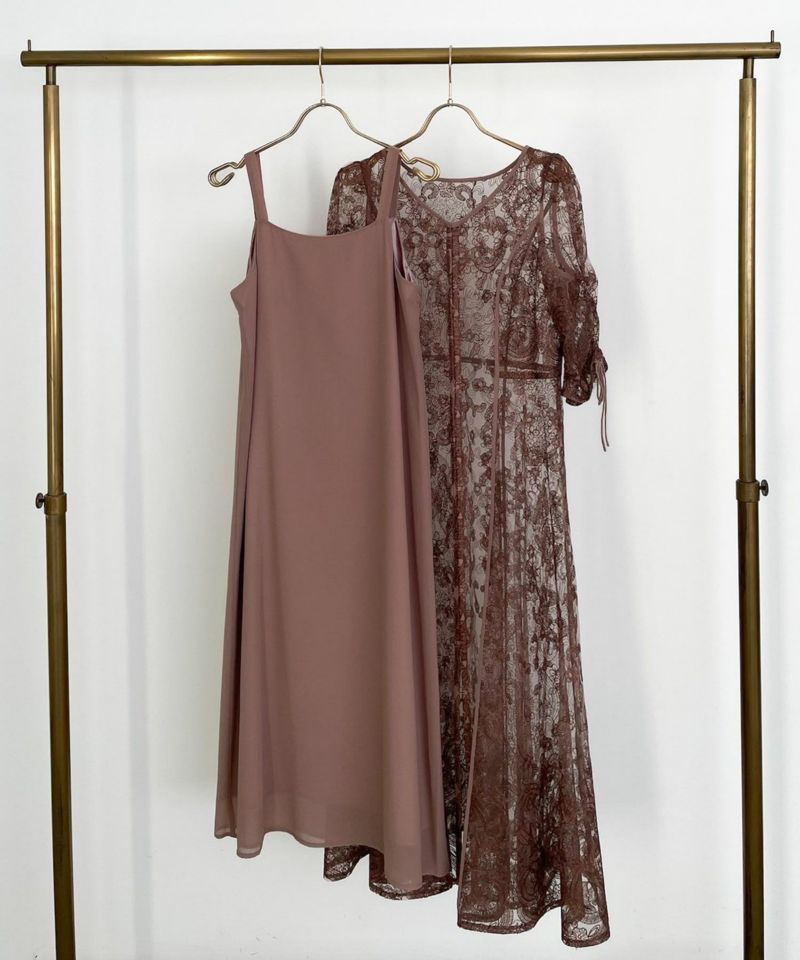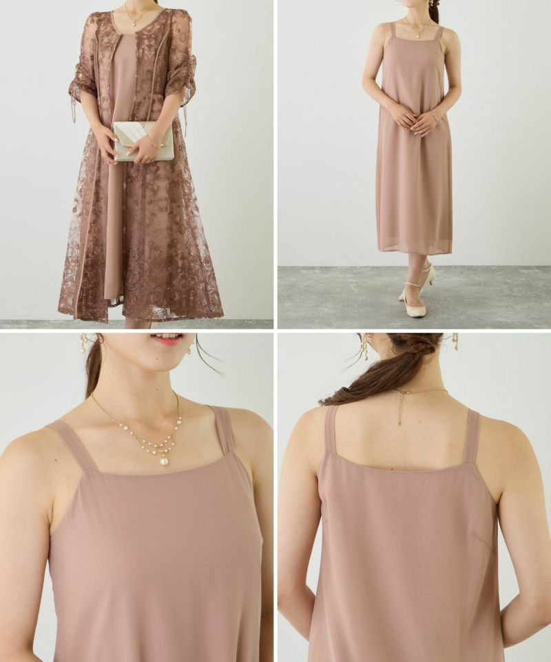 刺繍レースドレスとキャミワンピのレイヤードドレス。