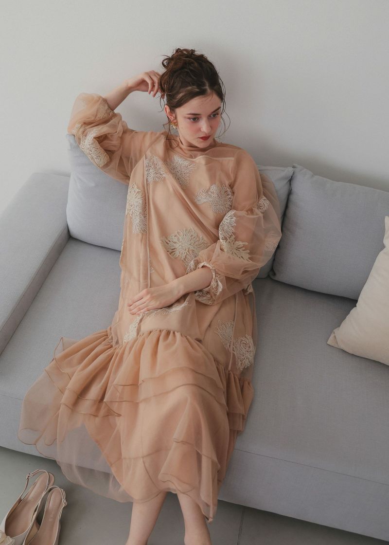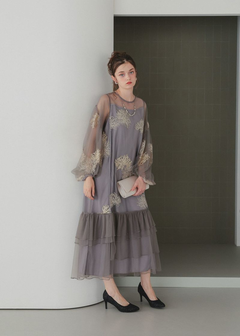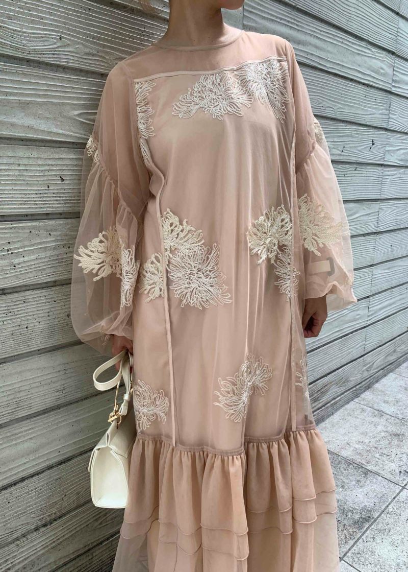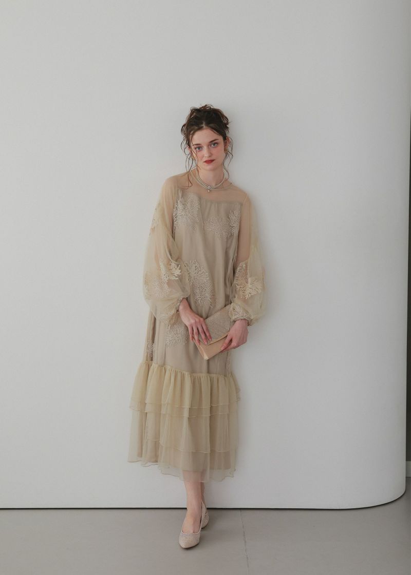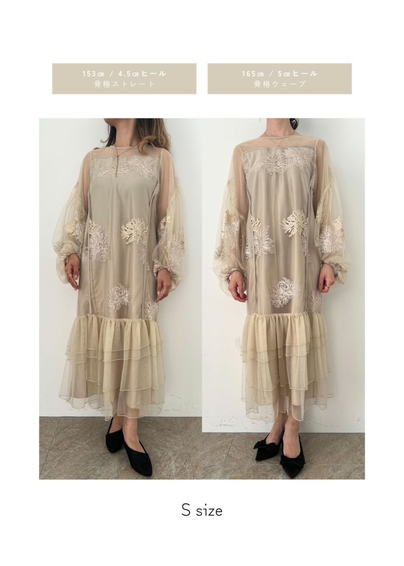 商品説明 ふわふわなシルエットや素材感がかわいいドレス。 身頃部分や袖に施された繊細な花柄刺繍も目を惹くポイントです。 チュール生地と、裏地を微配色にすることでメリハリ感がうまれ、ふんわりとしたシルエットながらも着ぶくれしない仕上がりに。 バルーンタイプの袖で、気になる肩幅や二の腕もさりげなくカバーしてくれます。 他にはないデザインで、人と被りたくない方におすすめな個性の光る1点です ※ハンガー掛けの商品画像が実際の商品のお色味に近くなっております。 ※商品画像は、光の当たり具合やパソコンなどの閲覧環境により、 実際の色味と異なって見える場合がございます。予めご了承ください。 おすすめのシーン カジュアルな結婚式・二次会・お呼ばれ・成人式・同窓会・ 女子会・謝恩会 パーティー・演奏会・お食事会など多様なシーンのコーディネートに使えます。 商品詳細 【備考】 ・裏地付き ・後ろ中心ファスナー ・お袖やデコルテ部分透け感あり ・伸縮性なし ・袖口ゴムなし 洗濯方法:クリーニング店にご相談ください。 ※その他お取り扱いに関しましては、商品に付属のアテンションタグをご覧ください。 原産国:中国 お問い合わせ品番:25671 着用モデル身長174cm