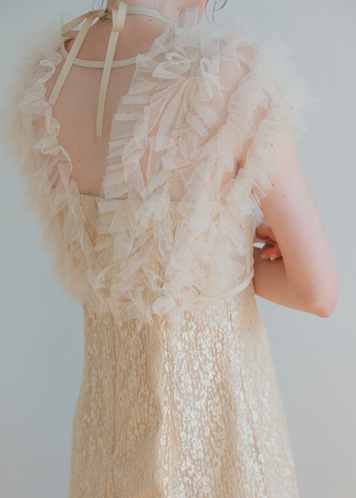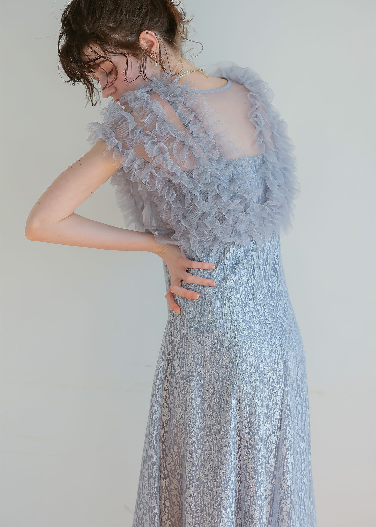 材質 〈ワンピース〉 レース地 ナイロン 100% サテン地 ポリエステル 100% 〈チュールボレロ〉 本体 ポリエステル100% 別布 ポリエステル100% 厚地 薄地 透ける 透けない 柔らかい 固い 光沢 マット 洗濯方法:クリーニング店にご相談ください。 ※その他お取り扱いに関しましては、商品に付属のアテンションタグをご覧ください。