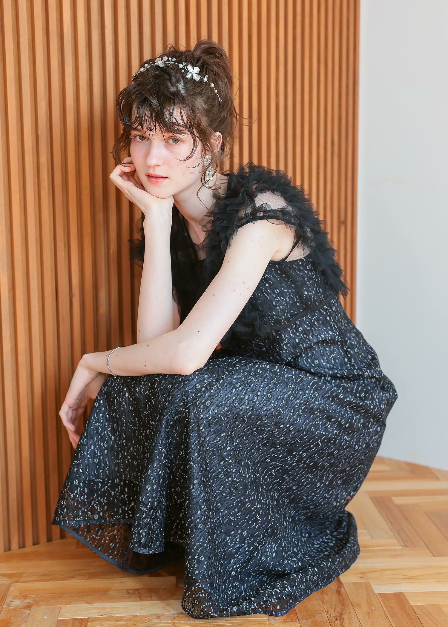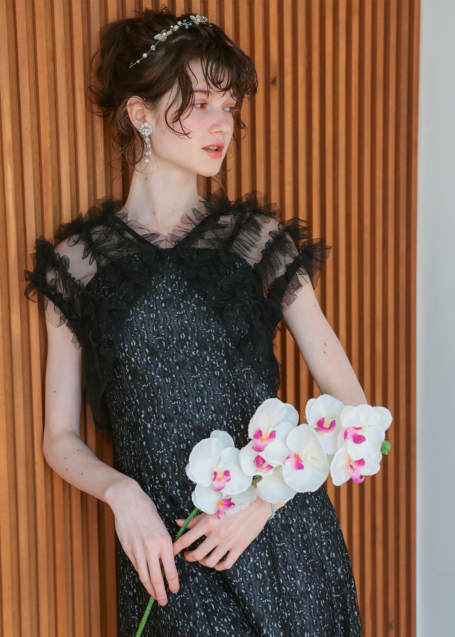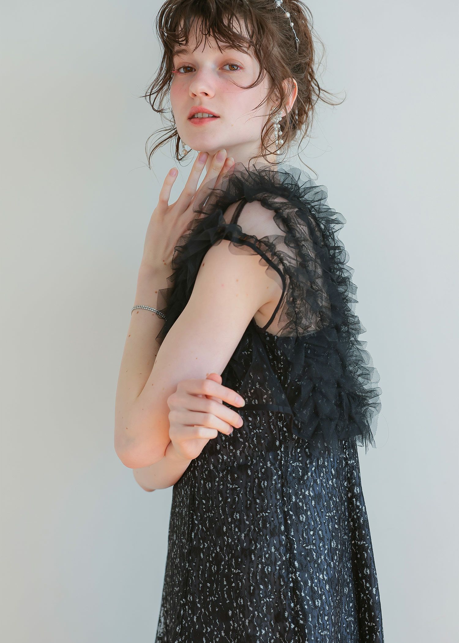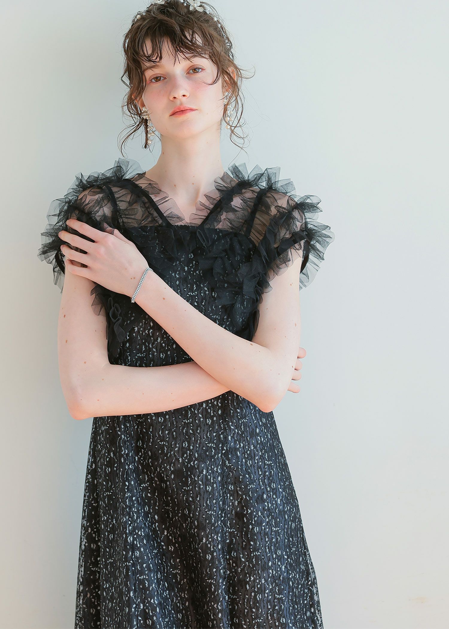 商品説明 ボリュームのあるフリルデザインと繊細なディテールが魅力の ボレロとワンピースがセットになったドレス。 フロントに施された繊細なチュールフリルがふんわりと肩を包み込み 二の腕をさりげなくカバー。 軽やかな透け感が上品な抜け感を与え、エレガントな雰囲気に。 ワンピースは抽象的な珍しい柄がアクセントとなり 光の角度によってラメがさりげなく煌めくため、派手になりすぎないデザインに。 身体のラインを拾いすぎず縦のラインをスッキリ見せてくれるため、脚長効果も期待できます。 ワンピースとボレロは分かれており、それぞれ単体での着用が可能です。 ※商品画像は、光の当たり具合やパソコンなどの閲覧環境により、 実際の色味と異なって見える場合がございます。予めご了承ください。 屋外の写真は通常より明るく見えています。 おすすめのシーン 結婚式・1.5次会・二次会・披露宴・お呼ばれ・成人式・同窓会 女子会・2次会謝恩会・パーティー・デート・演奏会・お食事会・ 発表会など多様なシーンのコーディネートに使えます。 商品詳細 【備考】 〈ボレロ〉 ・裏地なし ・透け感あり 〈ワンピース〉 ・裏地あり ・伸縮性なし ・後ろ背中部分ゴム入り ・背中心ファスナー 原産国:中国 お問い合わせ品番:25628 着用モデル身長176cm