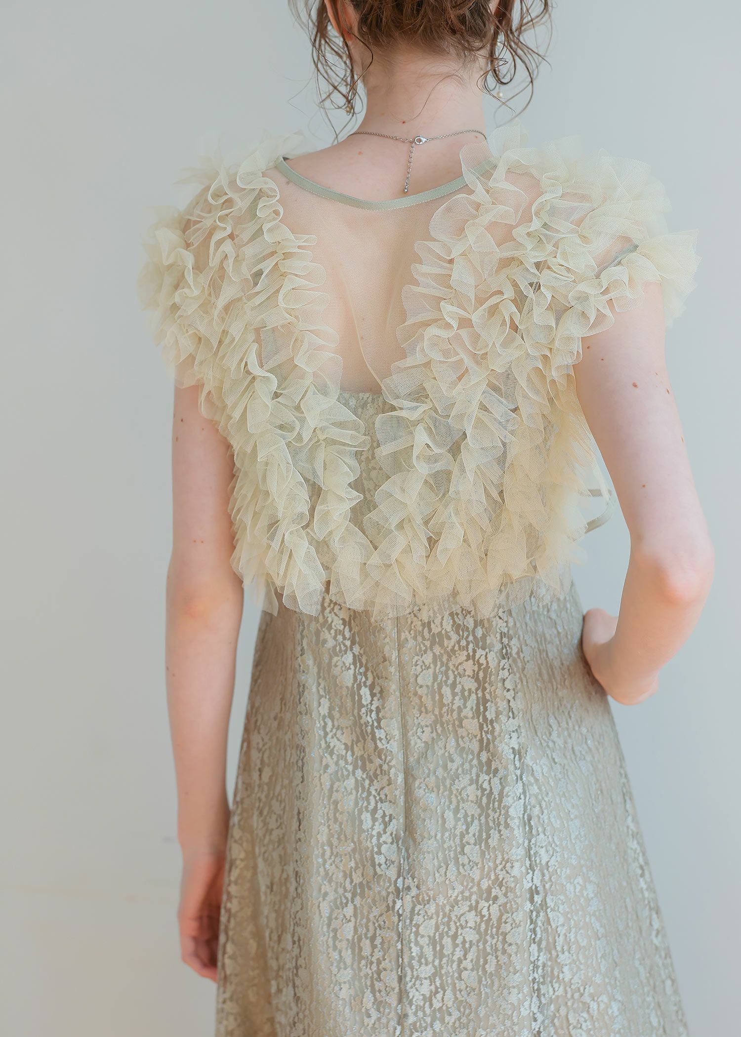 商品説明 ボリュームのあるフリルデザインと繊細なディテールが魅力の ボレロとワンピースがセットになったドレス。 フロントに施された繊細なチュールフリルがふんわりと肩を包み込み 二の腕をさりげなくカバー。 軽やかな透け感が上品な抜け感を与え、エレガントな雰囲気に。 ワンピースは抽象的な珍しい柄がアクセントとなり 光の角度によってラメがさりげなく煌めくため、派手になりすぎないデザインに。 身体のラインを拾いすぎず縦のラインをスッキリ見せてくれるため、脚長効果も期待できます。 ワンピースとボレロは分かれており、それぞれ単体での着用が可能です。 ※商品画像は、光の当たり具合やパソコンなどの閲覧環境により、 実際の色味と異なって見える場合がございます。予めご了承ください。 屋外の写真は通常より明るく見えています。 おすすめのシーン 結婚式・1.5次会・二次会・披露宴・お呼ばれ・成人式・同窓会 女子会・2次会謝恩会・パーティー・デート・演奏会・お食事会・ 発表会など多様なシーンのコーディネートに使えます。 商品詳細 【備考】 〈ボレロ〉 ・裏地なし ・透け感あり 〈ワンピース〉 ・裏地あり ・伸縮性なし ・後ろ背中部分ゴム入り ・背中心ファスナー 原産国:中国 お問い合わせ品番:25628 着用モデル身長176cm 着丈バストウエストヒップ肩幅 ワンピース12382~9178100-- ボレロ3296----48 単位(cm) ▼着用サイズ Mサイズ model 身長 176cm ▼着用サイズ 全てMsize staff着用/身長153cm(グリーン・ブラック) staff着用/身長160cm(ベージュ) お問い合わせ品番:25628 着丈ガイド REVIEW レビュー