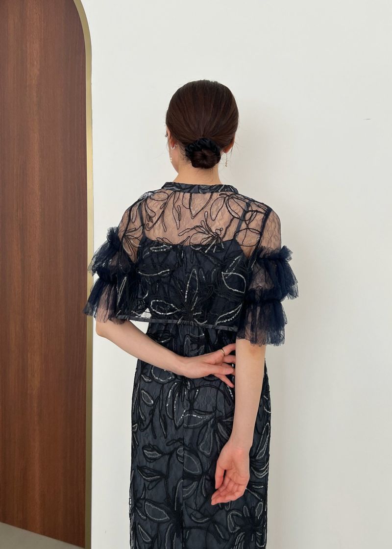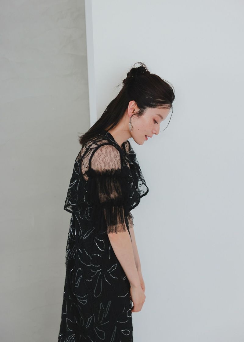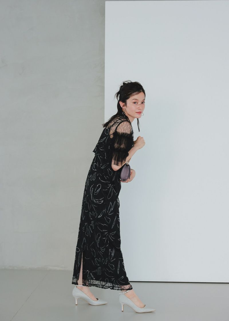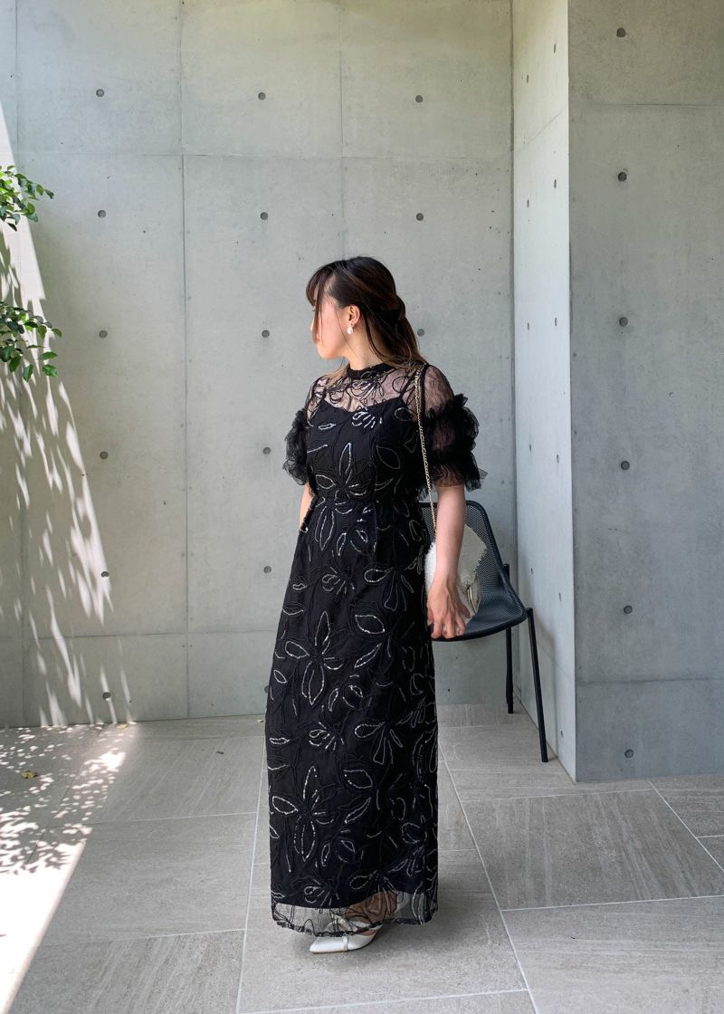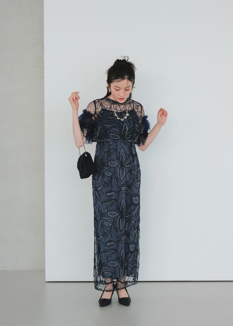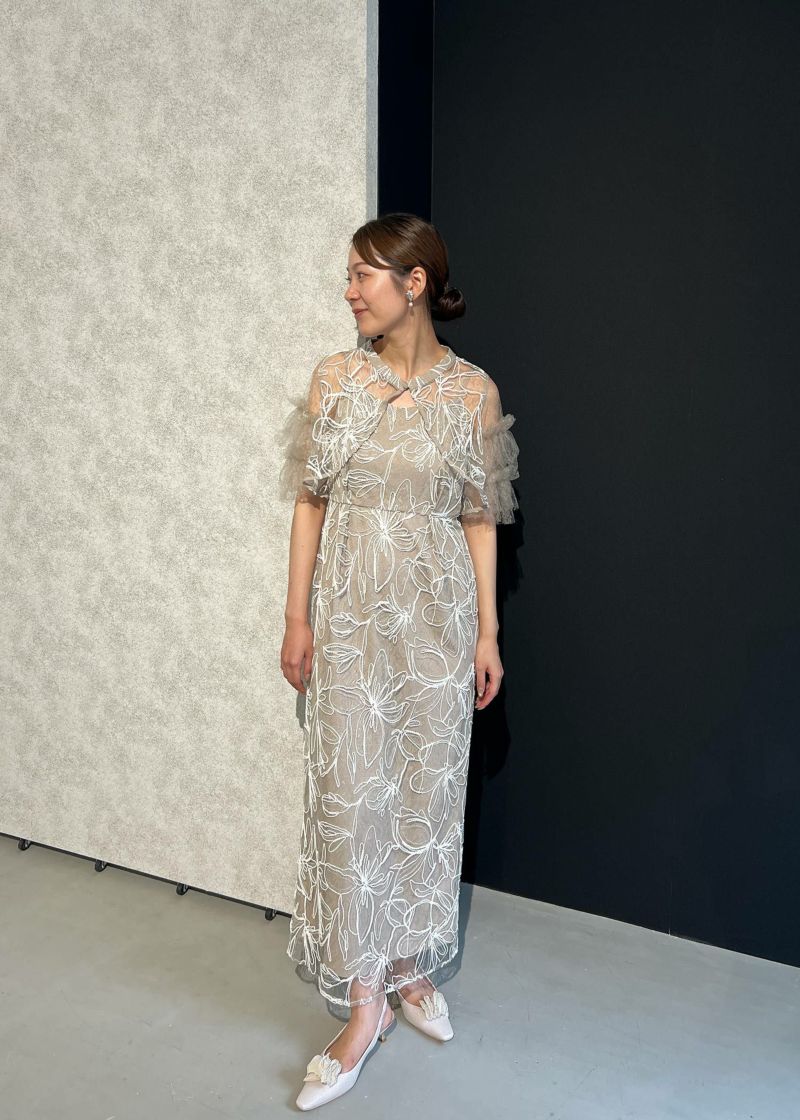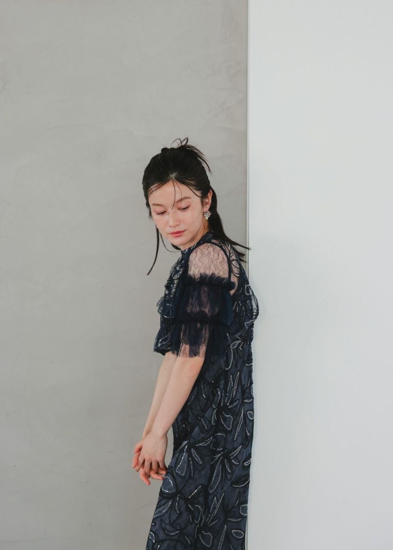 商品説明 ふわっとチュールとキラめくスパンコールの可愛さを詰め込んだドレス。 線で描いたような花柄刺繍が都会的な雰囲気を演出。 刺繍にはスパンコールが散りばめられており、 動くたびにさりげなくキラめくのがとっても綺麗。 短めのブラウス丈でスタイルアップも。 袖のふわっと柔らかいレースチュールが優しい印象をプラスします。 前後どちらをフロントにしても着られるタイプなので、 お好みに合わせて変えていただけます。 ワンピースはIラインのストレートなシルエットで大人っぽく。 スカートの前に入ったタックは、立体感を生み出すだけでなく ウエスト周りをスッキリと見せつつ、着心地にゆとりも与えてくれます。 タイムレスなデザインで長く着ていただける、 程よくシンプルで洗練された印象のお呼ばれドレスです。 ※商品画像は、光の当たり具合やパソコンなどの閲覧環境により、 実際の色味と異なって見える場合がございます。予めご了承ください。 おすすめのシーン 結婚式・披露宴・二次会・同窓会・謝恩会など 多様なシーンのコーディネートに使えます。 商品詳細 【備考】 ・裏地あり ・伸縮性なし ・後ろウエストゴム入り ・バックファスナー仕様 洗濯方法:クリーニング店にご相談ください。 ※その他お取り扱いに関しましては、商品に付属のアテンションタグをご覧ください。 原産国:中国 お問い合わせ品番:25637 着用モデル身長160cm
