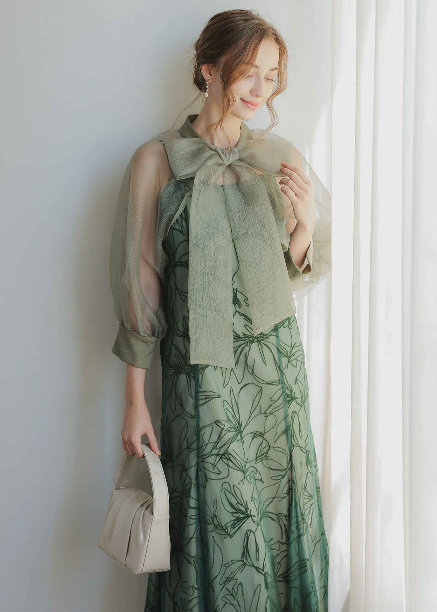 ボレロには凹凸としたニュアンス感のあるオーガンジーを使用。