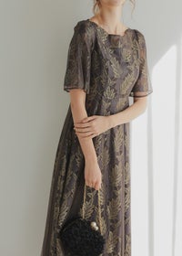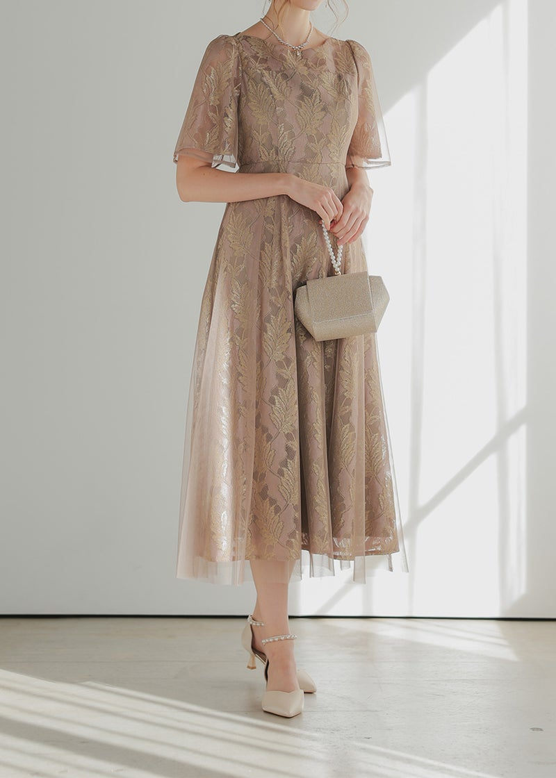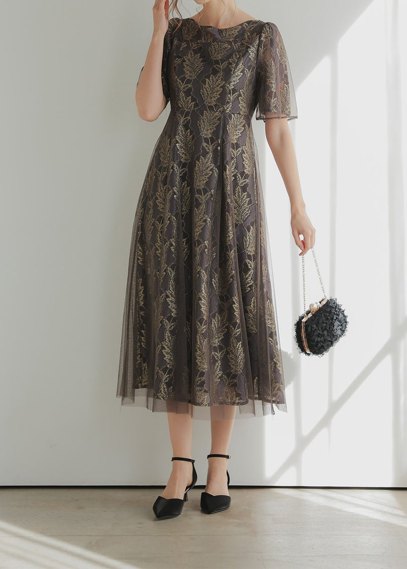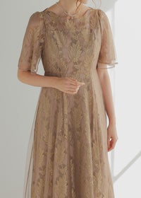 ゴールド刺繍が華やかさを感じさせるドレス。 ウエストラインは高めの位置にすることで、足長効果も◎ ハイウエスト切り替えの為、ウエスト周りすっきりと見せてくれ、 光沢のあるゴールド刺繍が高級感をもたらします。 バックウエストはゴム入りの為、ストレスフリーでご着用いただけるのも嬉しいポイント。 着脱しやすい後ろファスナーの仕様です。 無地チュール地を上から重ねることで、歩くとふわっとした広がり感も。 上品な透け感が女性らしい上品な印象を引き立たせます。 オケージョン以外に発表会等のデイリーでもお使いいただきやすい1着です。 ※ハンガー掛けの商品画像が実際の商品のお色味に近くなっております。 ※商品画像は、光の当たり具合やパソコンなどの閲覧環境により、 実際の色味と異なって見える場合がございます。予めご了承ください。