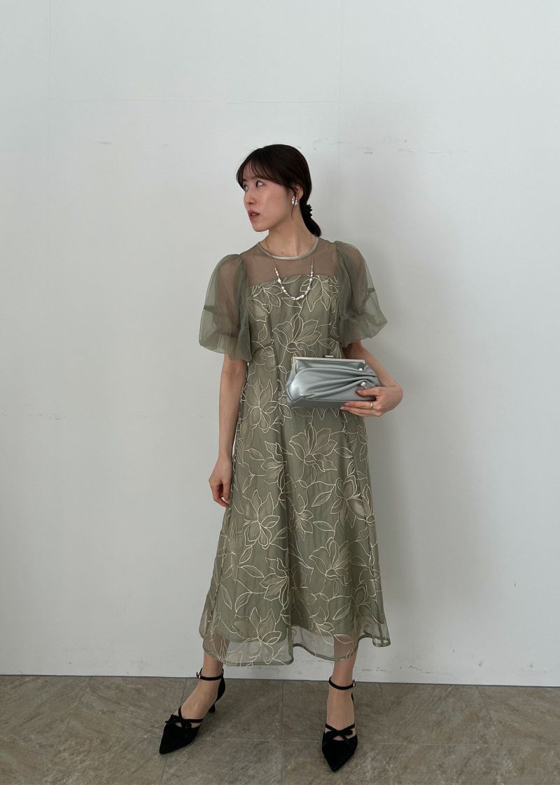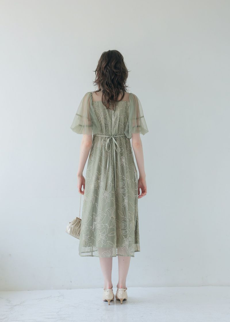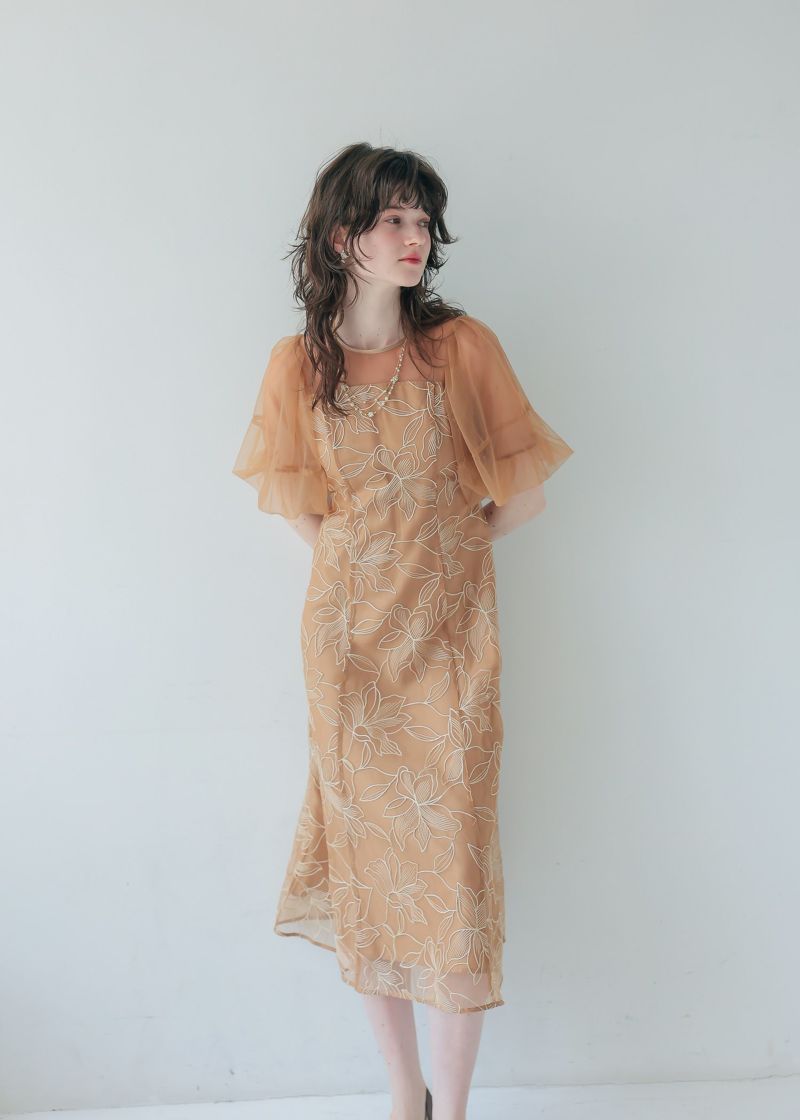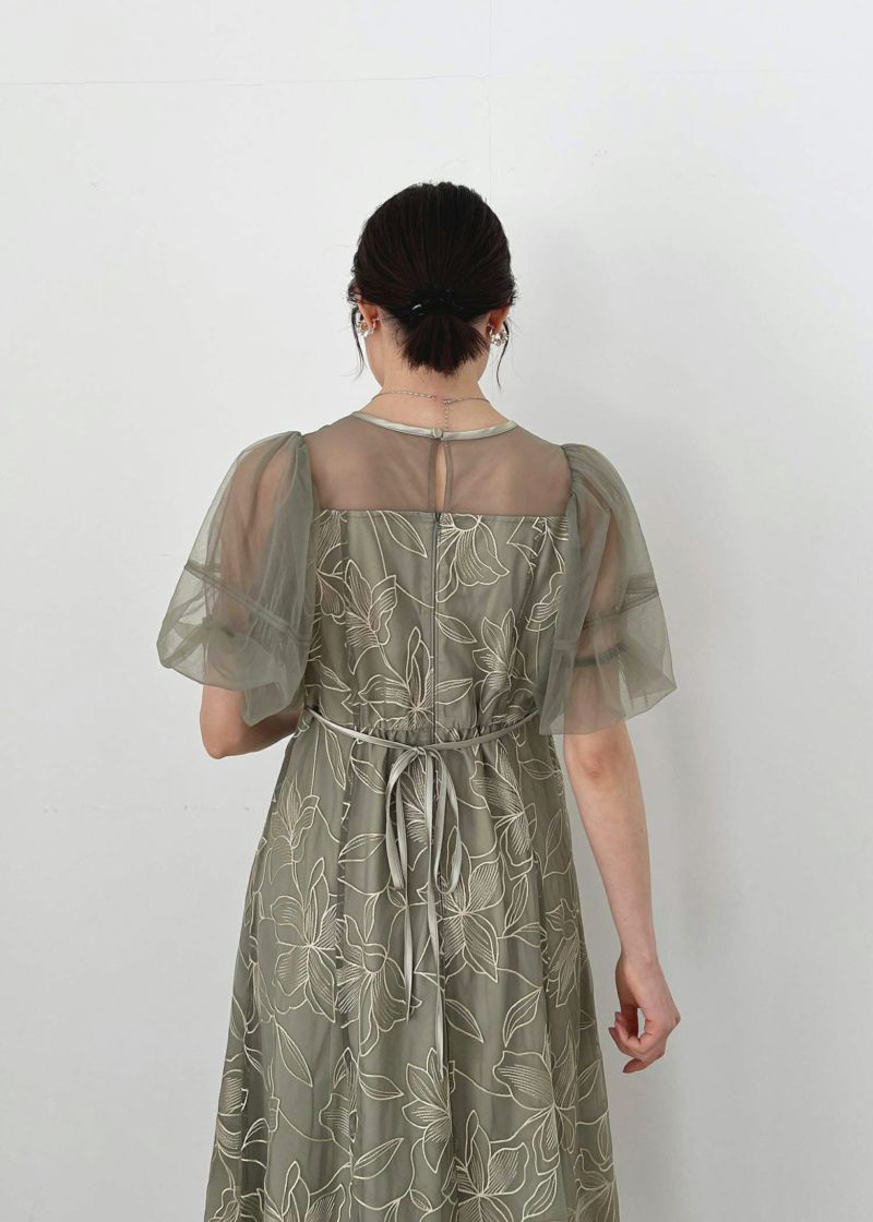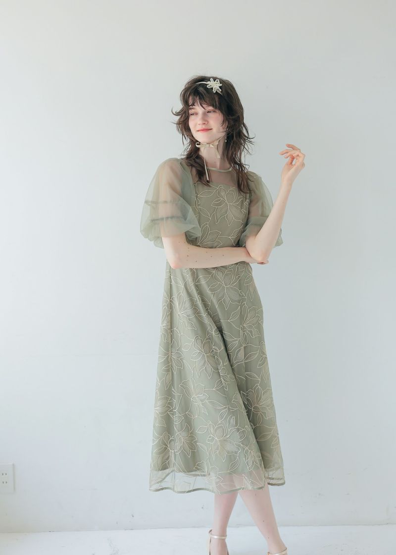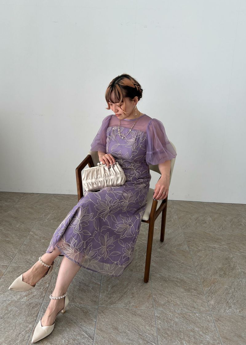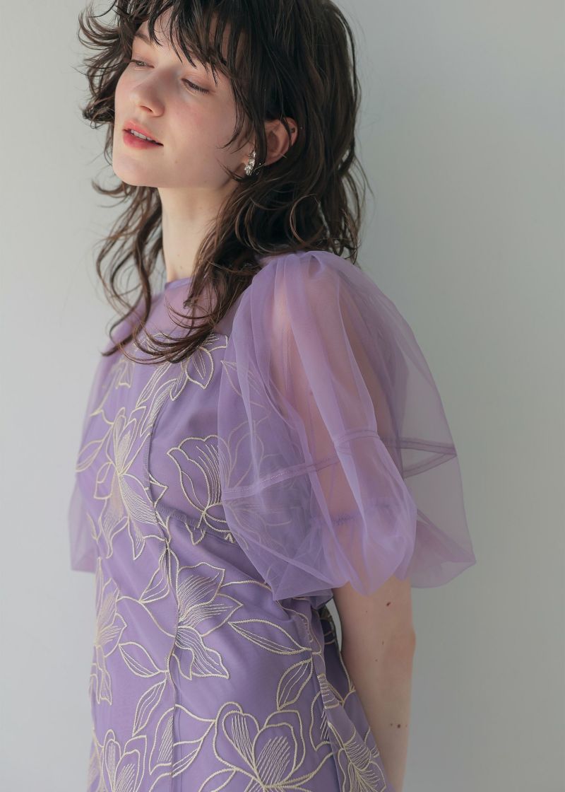 柔らかいチュールを使用したパフスリーブで二の腕カバーをしつつ上品な印象に。