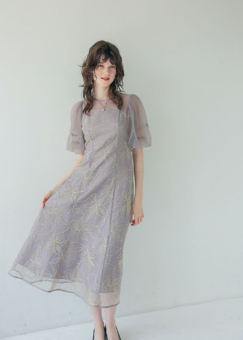 目を惹く大ぶりなユリ柄を全身に纏ったオケージョンドレス。