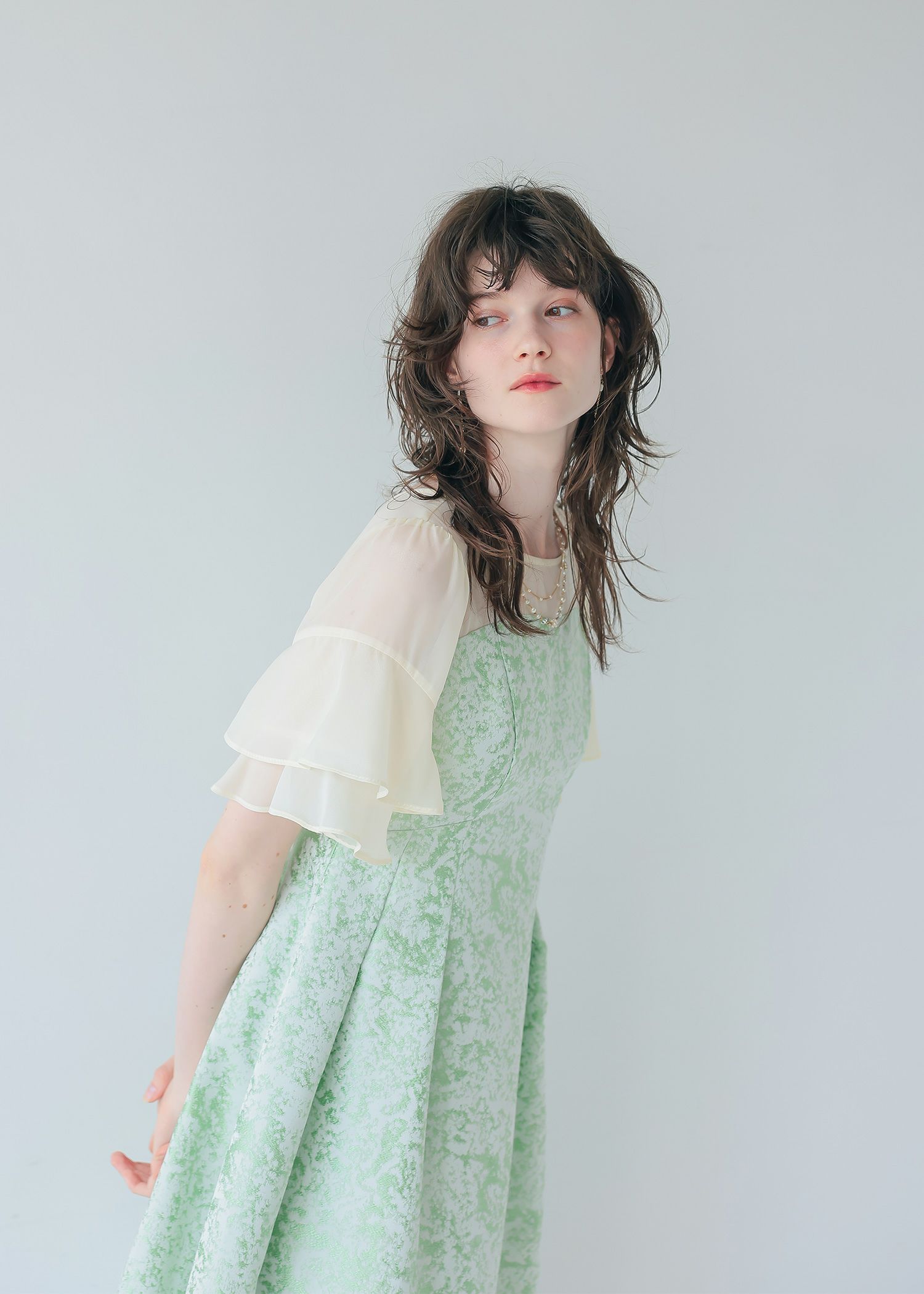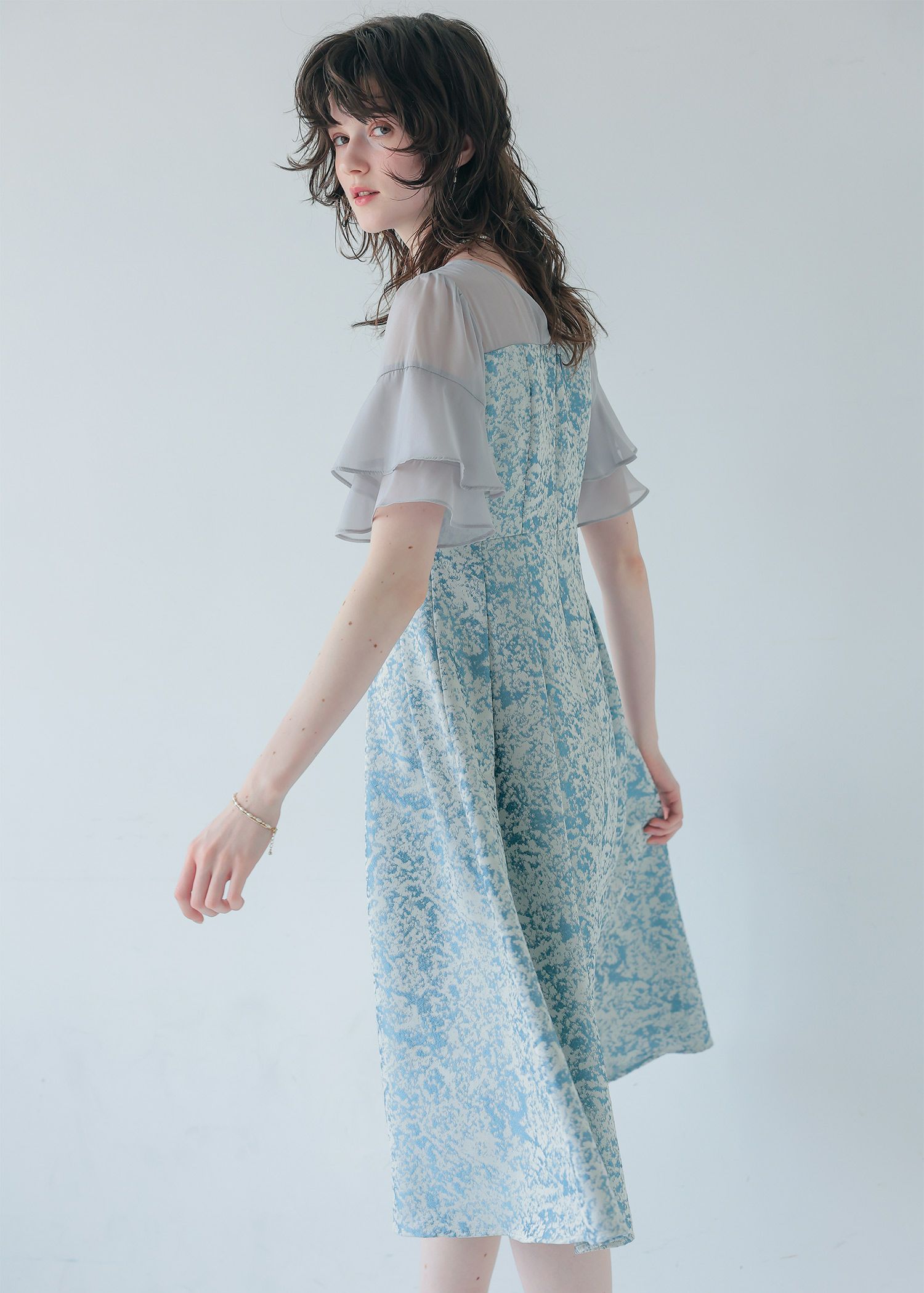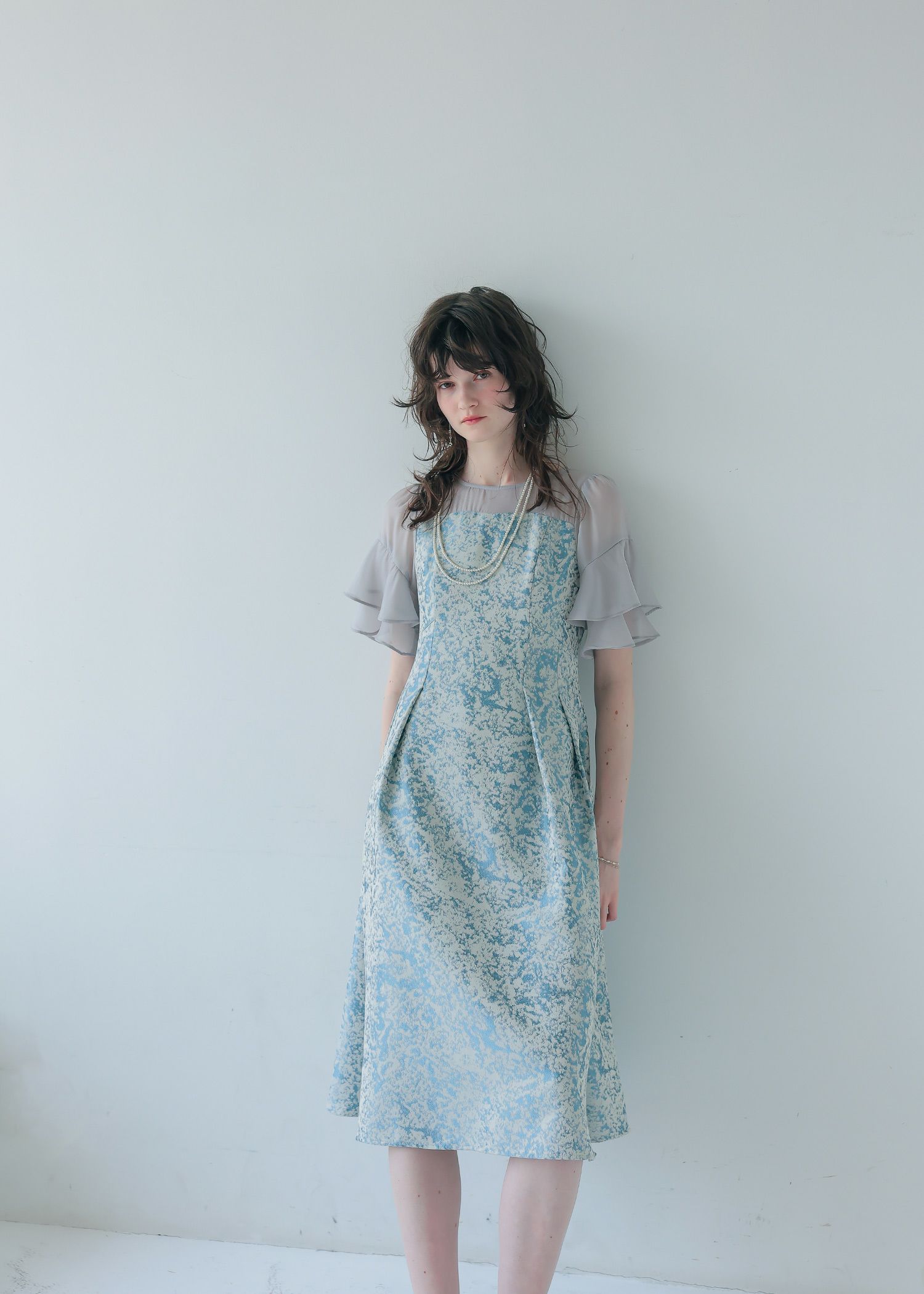 商品説明 モードライクな雰囲気のジャガード生地が目を引くオケージョンドレス。 デコルテと袖部分はシアー素材を使用し抜け感をプラス。 ラッフルスリーブがアクセントになり、肩周りをカバーしつつ 華奢見せさせてくれます。 程よい肌見せと袖のラッフルスリーブで女性らしく。 上半身映えするポイントをぎゅっと詰め込んだ一着。 フィット&フレアのシルエットでメリハリのあるスタイルに仕上がります。 少し短めの着丈なので、低身長の方にもおすすめです。 オケージョンシーンだけでなく、デイリーにも使いやすい大人のドレス。 結婚式や披露宴、二次会、ディナー、パーティー、お出かけなど幅広いシーンで大活躍してくれる一着です。 ※商品画像は、光の当たり具合やパソコンなどの閲覧環境により、 実際の色味と異なって見える場合がございます。予めご了承ください。 おすすめのシーン 結婚式・披露宴・二次会・同窓会・謝恩会など 多様なシーンのコーディネートに使えます。 商品詳細 【備考】 ・裏地あり ・伸縮性なし ・デコルテに透け感あり ・バックファスナー仕様 洗濯方法:クリーニング店にご相談ください。 ※その他お取り扱いに関しましては、商品に付属のアテンションタグをご覧ください。 原産国:中国